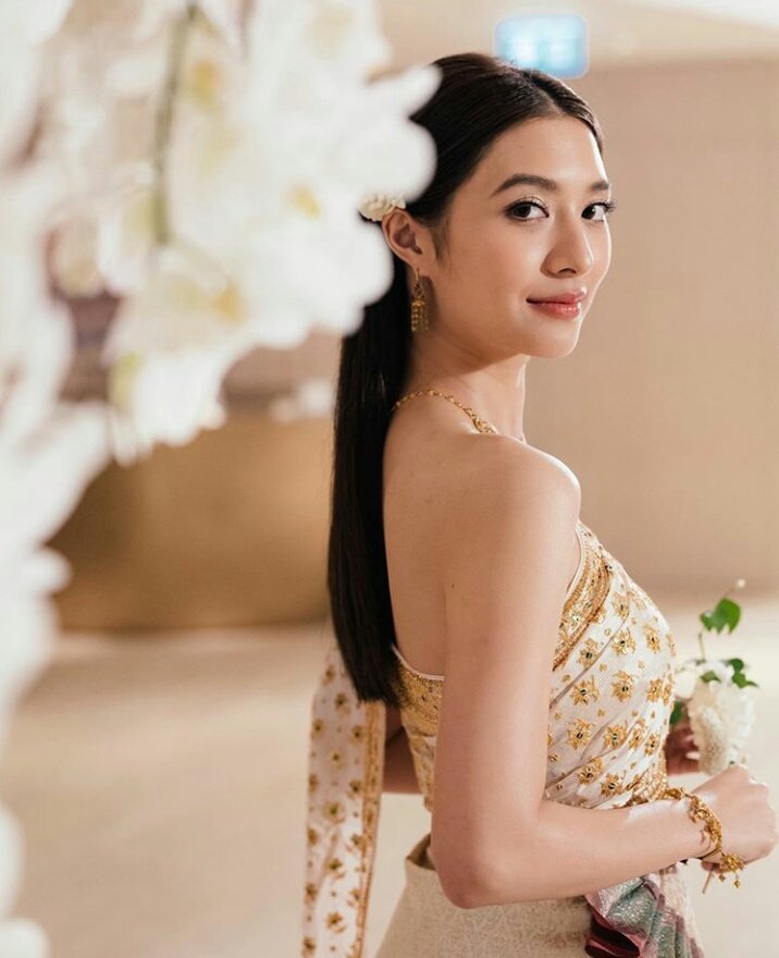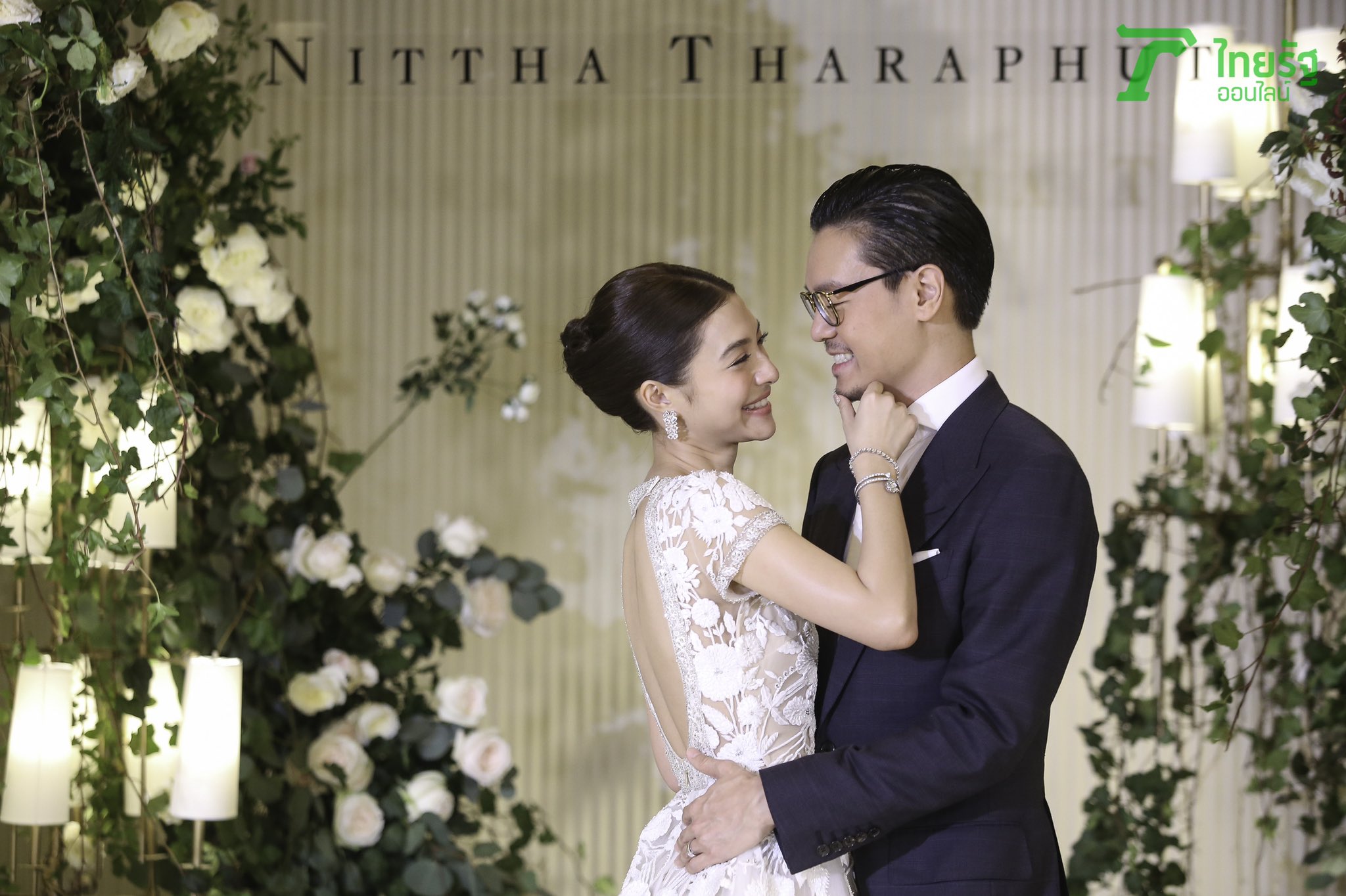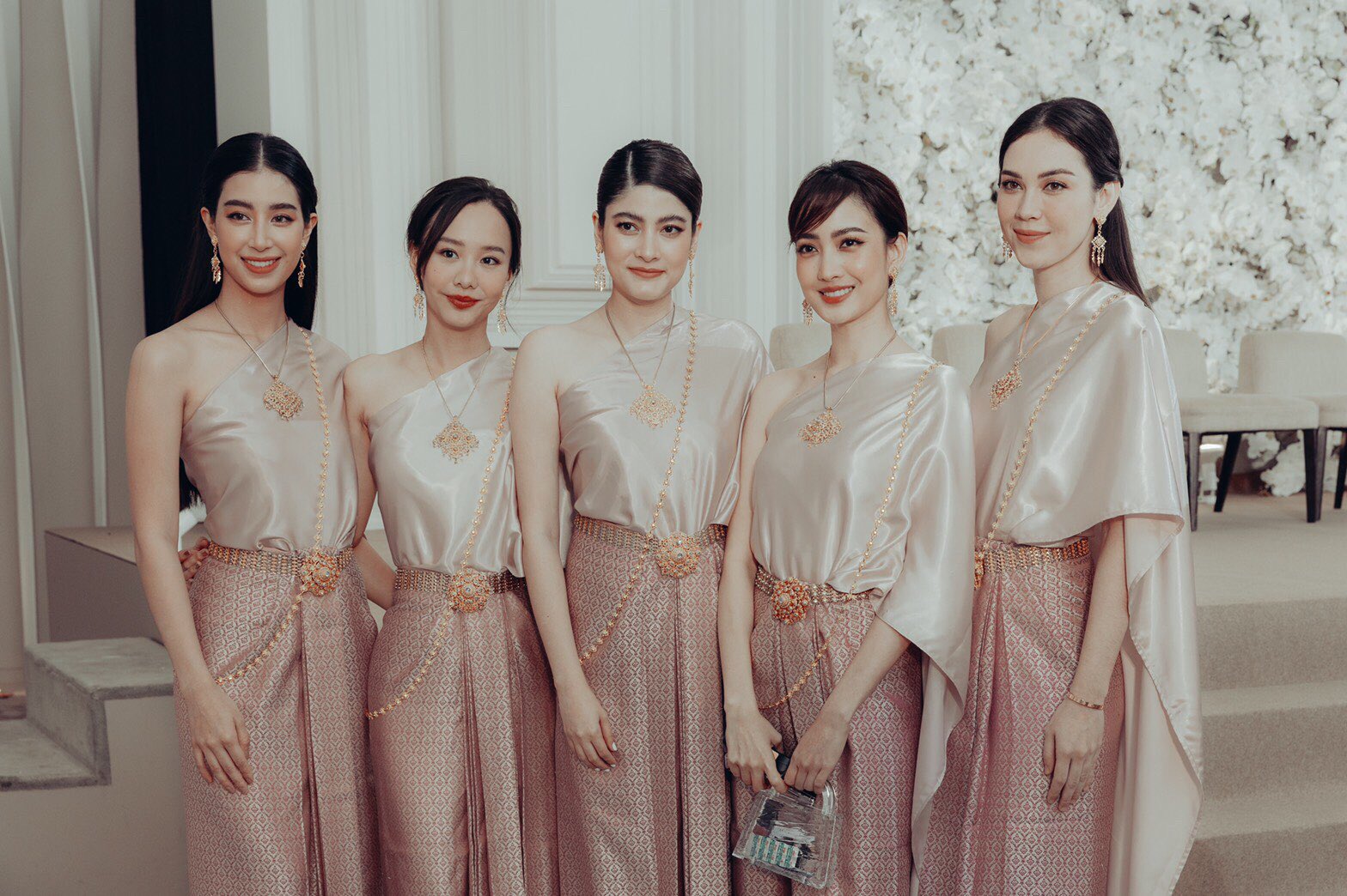 "มิว นิษฐา-ไฮโซเซนต์" แต่งกายสวยสง่า เข้ารับพระราชทานน้ำสังข์ สิริมงคลชีวิตคู่