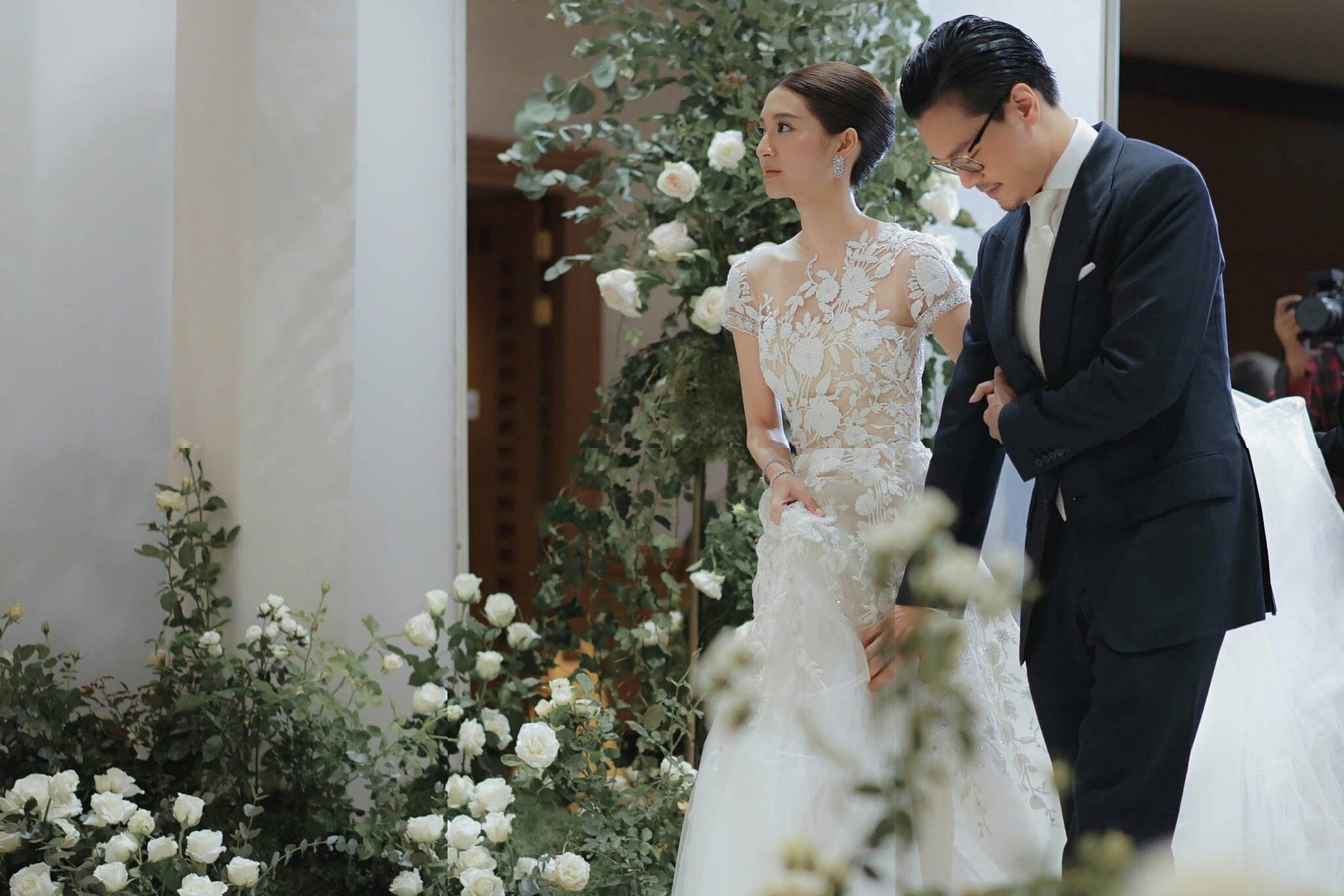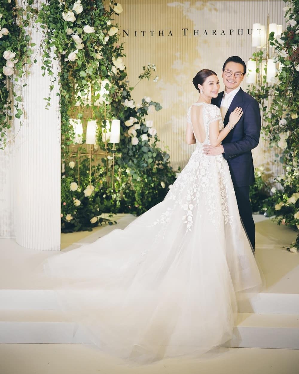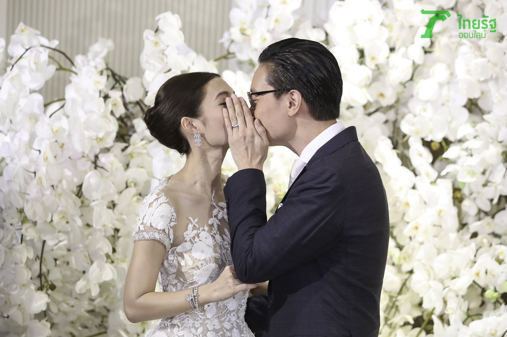 "มิว นิษฐา-ไฮโซเซนต์" แต่งกายสวยสง่า เข้ารับพระราชทานน้ำสังข์ สิริมงคลชีวิตคู่