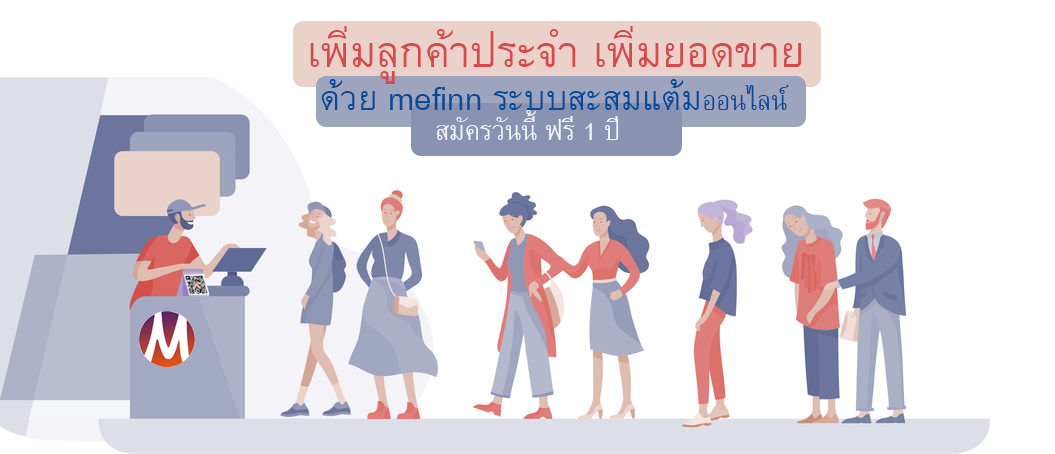 mefinn ระบบสะสมแต้มออนไลน์ ช่วยเพิ่มลูกค้าประจำ เพิ่มยอดขาย สมัครวันนี้ ฟรี 1 ปี