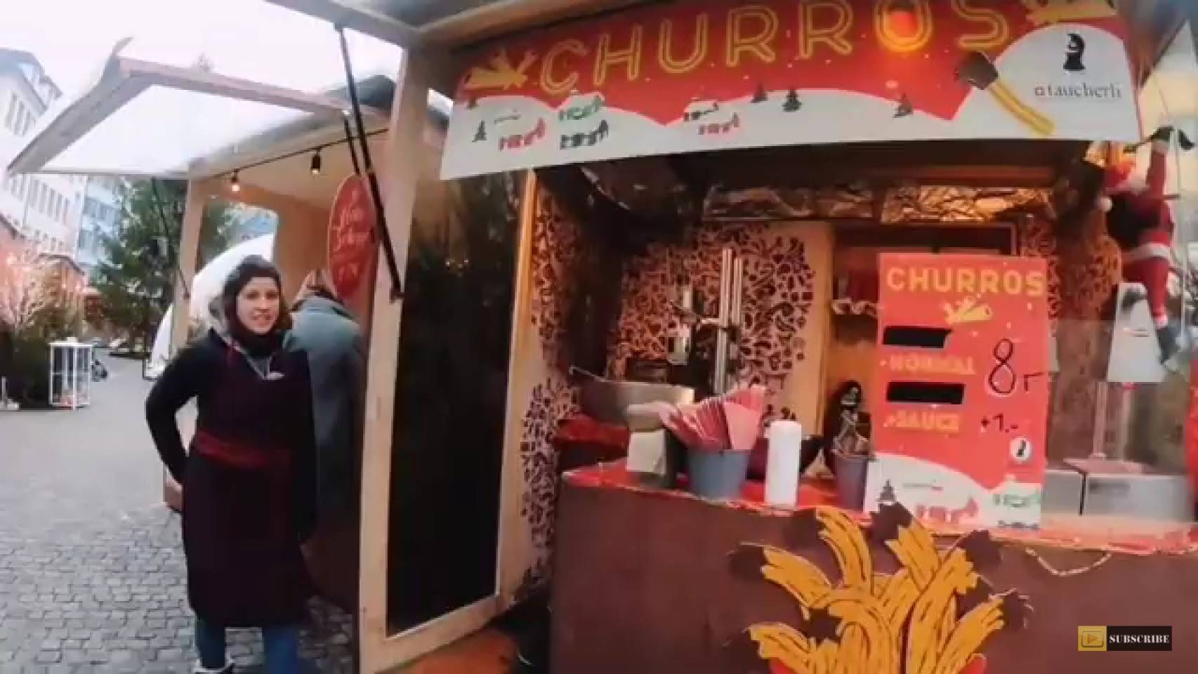 ผมเดินไปตลาดคริสมาสต์เช้าที่ โบสถ์ Grossmünster แต่ดูแล้วเหมือนยังไม่ค่อยจะเปิดดี เดินข้ามสะพานมาก็เจอตลาดคริสมาสต์อีกตาดนึงตรง โบสถ์ Fraumünster เจอร้าน Churros ร้านนึง เธอเป็นคนน่ารักมากๆ คุยกันอยู่พักนึง เธอเป็นคนเยอรมัน เราสั่งเชอโร่ + ซอสสตอเบอรี่ เฮ้ย....มันแบบว่าอร่อยมากๆ อร่อยจริงๆ เชอโร่ร้อนๆ กับ ซอสสตอเบอรี่ที่แบบว่า ได้รสชาติผมไม้เนียนและนัวจริงๆ จะอธิบายยังไงดี 555