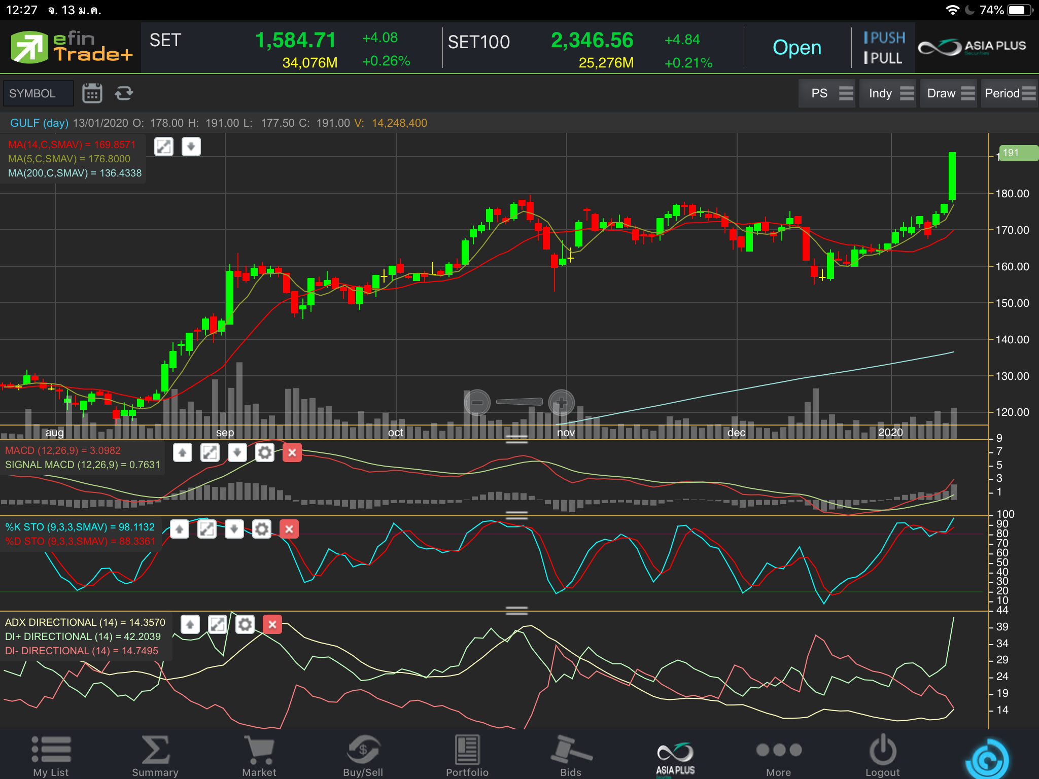 นับหนึ่งละ. วัดใจ. /วอลลุ่ม. แค่ 15.000 ล้านเอง. แถว 1587. ตื้อละ. /กัฟ. แท่งนี้ขอปิดแดงนะ