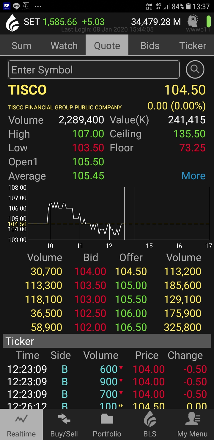 Tisco .. หากปันผลปีนี้ 10 บาท คงถือเป็นปันผล 100 % จากราคาทุน 10 บาท.. ไล่ตาม uv. เลยละ เผลอแปปๆมา 107
