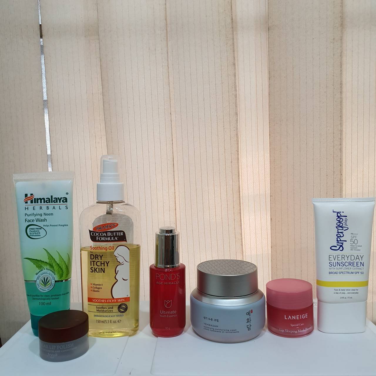 เลยคิดว่าไม่ไหวแน่ ไหนๆไปถ่ายกันทั้งที ต้องกู้หน้ากันหน่อยแล้ว เพราะไม่งั้นถ่ายมามีหวังไม่ถูกใจแหง นับวันจากตอนนั้นก็ใช้เวลาบำรุงผิวกู้หน้า กู้หุ่นด้วยประมาณ 1 เดือนเต็มๆค่ะ ก็เป็นเวลาที่ไม่มากไม่น้อยจนเกินไปนะคะ เลยตัดสินใจว่าจะมีไปออกกำลังกายบ้าง คุมอาหารบ้าง แล้วก็จะเน้นทาบำรุงผิวหน้าผิวตัวแบบสม่ำเสมอ เพื่อให้ออกมาดูดีที่สุด จะบอกว่าทำไม่ยากเลยนะคะ ผิวดีขึ้นแบบเห็นได้ชัดเลย เลยอยากจะเอามาบอกต่อกันค่ะ ว่าเรามีวิธียังไงบ้างเกี่ยวกับพวกสกินแคร์ที่ใช้ คนอื่นๆเผื่อมีแพลนจะออกงาน หรือจะนัดกันไปถ่ายพรีอีกรอบแบบเราจะเอาไปลองทำตามดูกันได้นะคะ ตอนนั้นเราทาบำรุงขั้นตอนประมาณนี้ค่ะ