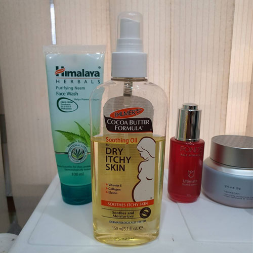 3.ทาน้ำมันที่ผิวตัว อันนี้เราใช้เป็น Palmers Cocoa Butter Formula Skin Therapy Oil ออยล์ทาผิวตัวนี้เป็นสูตรสำหรับคุณแม่นะคะ ค่อนข้างจะอ่อนโยน เราเลยเอามาลองใช้ดูค่ะ แต่ด้วยความเป็นออยล์อ่ะเนอะ เค้าจะเหนียวๆ มันๆ พอสมควรเลย เราเองจะทาหลังอาบน้ำเสร็จทันทีค่ะตอนที่ผิวยังเปียกๆ นวดๆวนๆไป เพราะมีรอยแตกลายเยอะ ยิ่งตรงต้นแขนด้านในมีรอยชัดมาก เลยพยายามทาทุกวันค่ะ หวังให้เค้าจางลง ใส่ชุดถ่ายรูปจะได้ดูสวยๆ