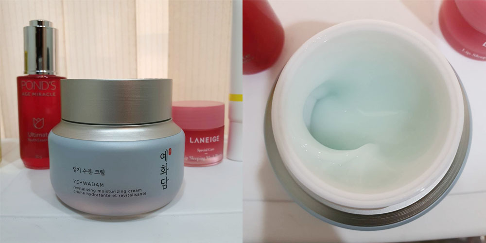 5.หลังจากลงเอสเซนส์ที่ช่วยเรื่องริ้วรอยไปแล้ว เราจะเติมความชุ่มชื้นอีกนิดนึงด้วย The Face Shop YEHWADAM Revitalizing Moisturizing Cream ตัวนี้จะเป็นครีมเนื้อเจลที่เน้นให้ความชุ่มชื้นแบบมากๆ ทาแล้วกักเก็บความชุ่มชื้นได้ดีด้วยค่ะ ส่วนใหญ่เราจะพอกแค่ตอนกลางคืนที่นอนในห้องแอร์นะคะ ถ้าเป็นตอนกลางวันเราลงแค่เอสเซนส์ของพอนด์สก็ให้ความชุ่มชื้นได้เพียงพอแล้วค่ะ แต่ในส่วนของตอนนอนในห้องแอร์ก็พอกเข้าไปเพื่อไม่ให้น้ำในผิวระเหย เพราะในห้องแอร์อากาศจะค่อนข้างแห้ง สำหรับตัวนี้เราก็ชอบนะคะ เนื้อหนักนิดนึง เหนียวหน้านิดหน่อย แต่ก็พอได้อยู่ค่ะ ด้วยความเป็นเนื้อเจลด้วยแหละก็เลยยังพอทนไหวอยู่ แลกกับความสวยต้องอดทนนิดนึง หรือถ้าใครว่าเหนียวไป จะเอาทิชชู่ซับออกก็ได้นะคะ จะได้สบายผิวขึ้นค่ะ
