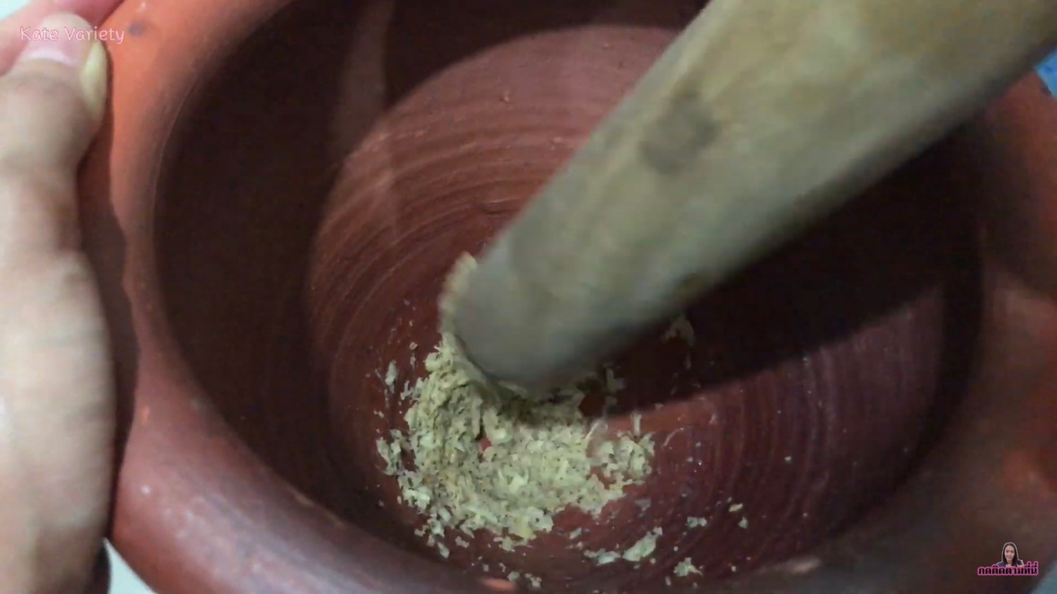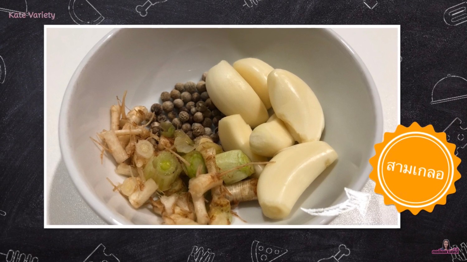 1.ตำกระเทียม พริกไทย และรากผักชี ให้พอละเอียด