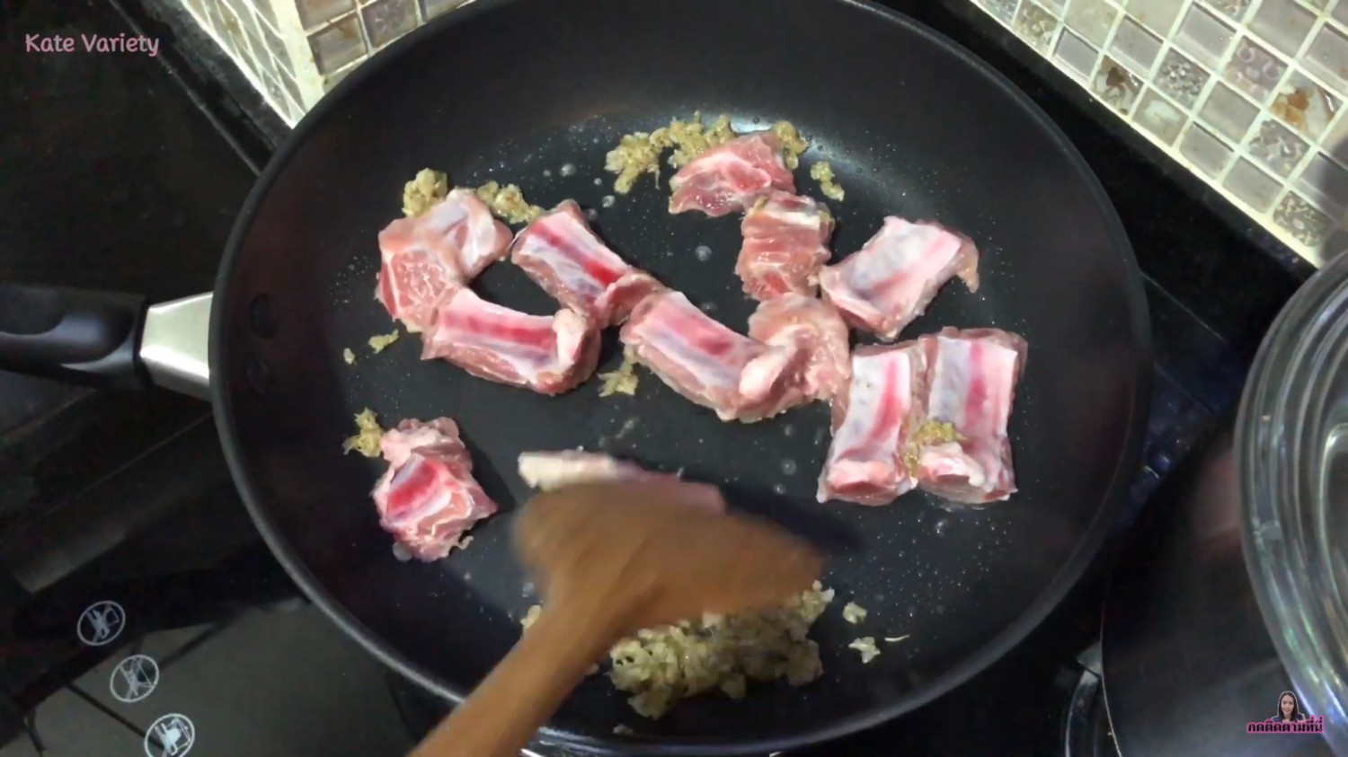 จากนั้นนำซี่โครงหมูลงผัดคลุกเคล้าให้เข้ากัน