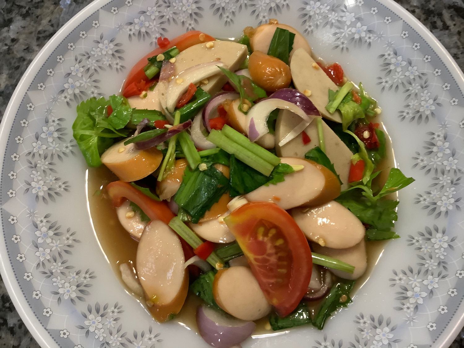 “ยำหมูยอ ไส้กรอก แบบใส่น้ำปลาร้า”by little pig🐽