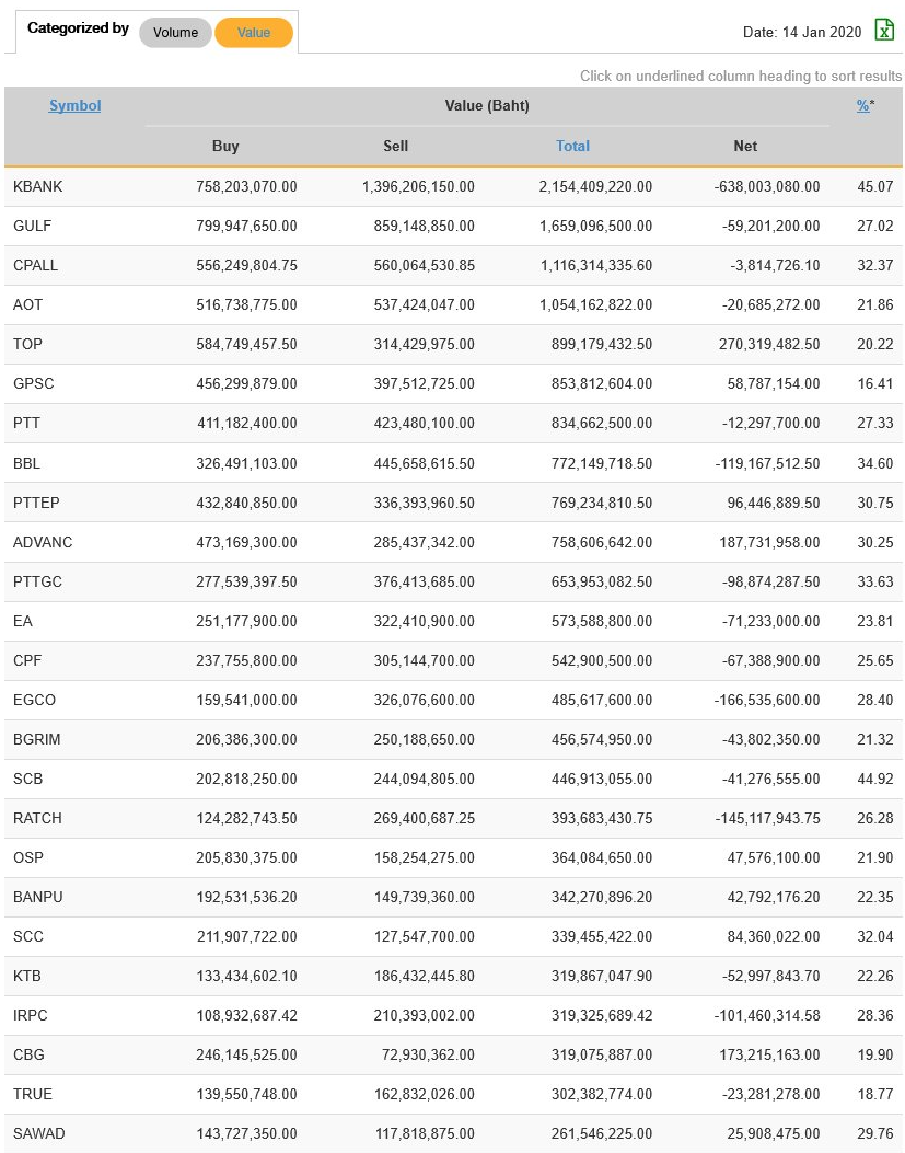 นักลงทุนต่างชาติ NVDR ซื้อ-ขาย มูลค่าสูงสุด 25 อันดับ 14/01/63