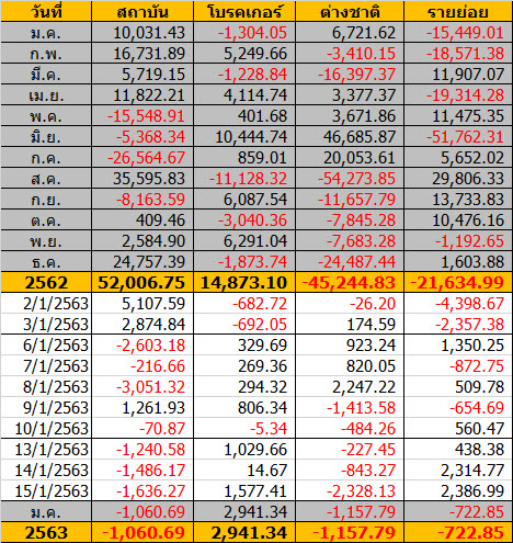 Sinthorn Summary 15/1/2563 : ต่างชาติขายสุทธิ -2,328.13 ลบ.