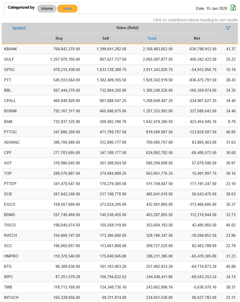 นักลงทุนต่างชาติ NVDR ซื้อ-ขาย มูลค่าสูงสุด 25 อันดับ 15/01/63