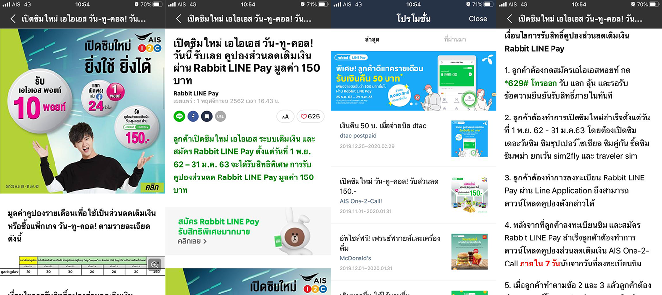 เปิด SIM AIS 1-2-Call ใหม่เมื่อวานและมันมีสิทธิพิเศษร่วมกับ Rabbit Line Pay แต่คูปองกลับใช้ไม่ได้ตามโฆษณา