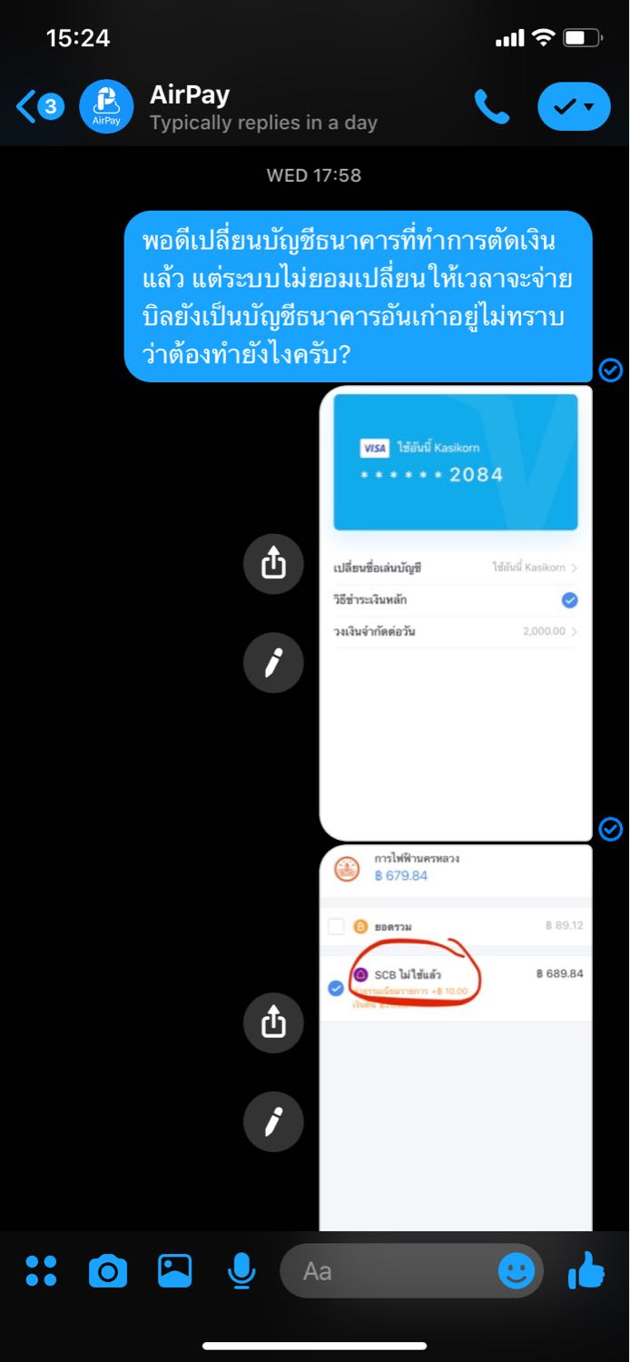 Airpay เปลี่ยนบัญชีธนาคารสำหรับตัดเงินไม่ได้