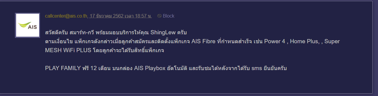 ais fibre ต่อโปร Home Plus 699 ได้ลด 50% แต่ playbox กลับไม่ให้แพ็กเกจ family