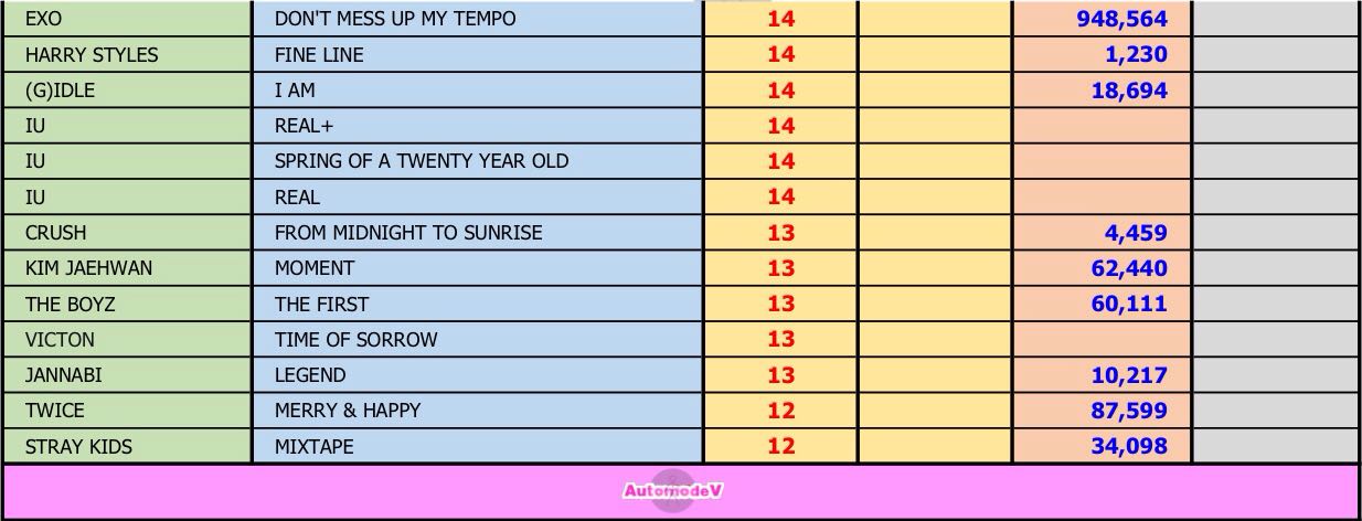 ยอดซื้ออัลบั้มจากชาร์ต HANTEO 15 - 16 มกราคม 2563 + 2020 1st DAY