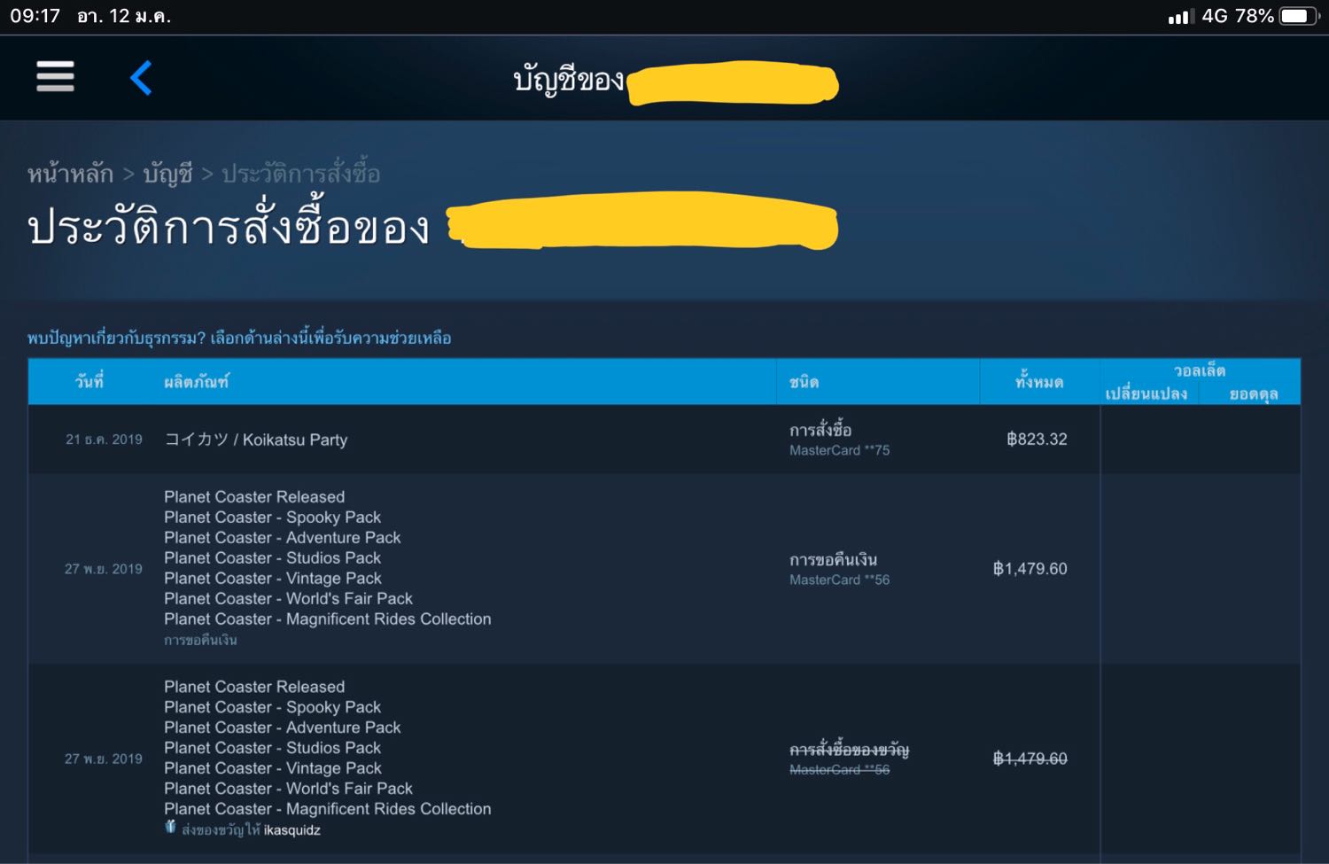 แล้วทีนี้เราก็กดของคืนเงินไป ทางสตีมก็ยืนยันการคืนเงินแล้ว (ซื้อและของเงินคืนตั้งแต่ 27 พฤศจิกายน 2562)