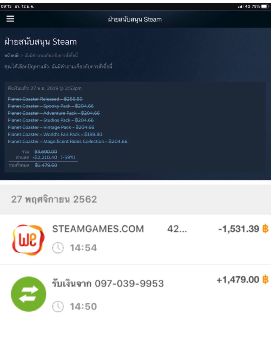 ตอนแรกเราติดต่อสตีมไปเขาก็บอกว่า ทางสตีมได้คืนเงินแล้วจะได้รับเงินช้าหรือเร็วขึ้นอยู่กับธนาคารนั้นๆ