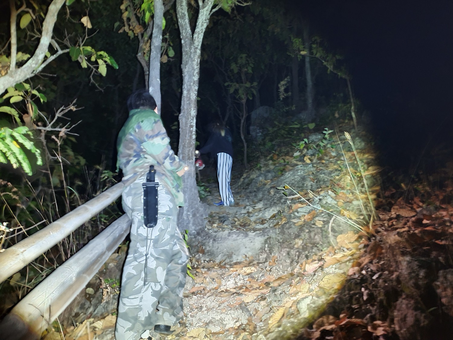 ทางทั้งชันและลำบาก เกาะไม้ผิดชีวิตเปลี่ยน อาจกลิ้งตกเขาได้เลย ต้องหามุม หาเหลี่ยมเกาะดีๆ และที่สำคัญคือไฟฉายจัดแบบสว่างๆไปเลยจ้า ทางมืดแปดด้านจริงๆ