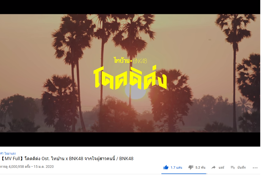 ในนี้อาจมีคนแซะว่าโดดดิด่ง หมดกระแสแล้วบ้าง เพราะเจออีกเพลงมาแรง แต่ถ้าเราดูสถิติเพลงโดดดิด่ง ที่ทำยอดวิวได้ 10 ล้านวิวแล้ว เพลงนี้ของ bnk48 ทำ 10 ล้านวิวได้เร็วที่สุด ยอดวิวตอนนี้ก็ขึ้นเรื่อยๆ วันหน