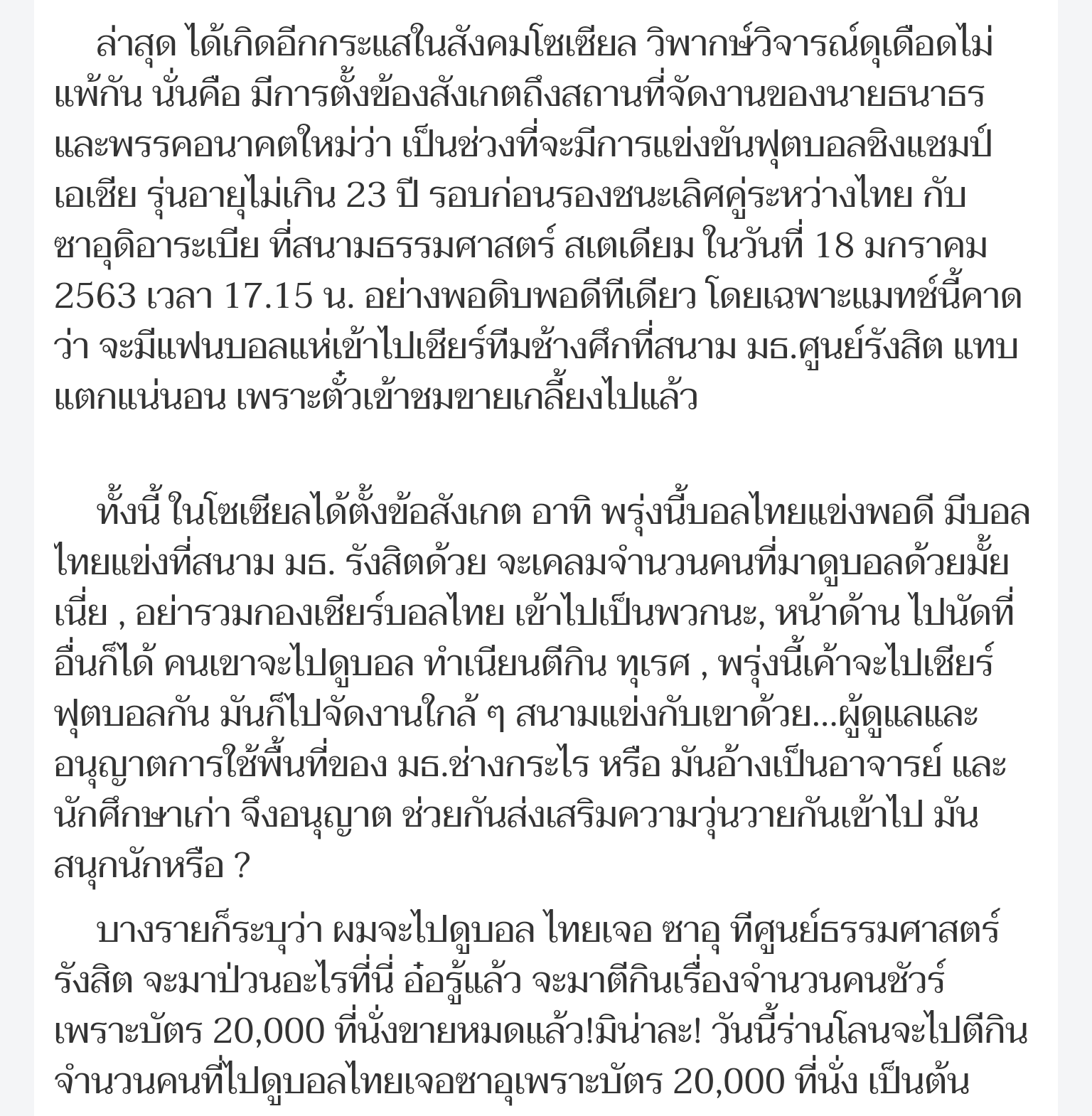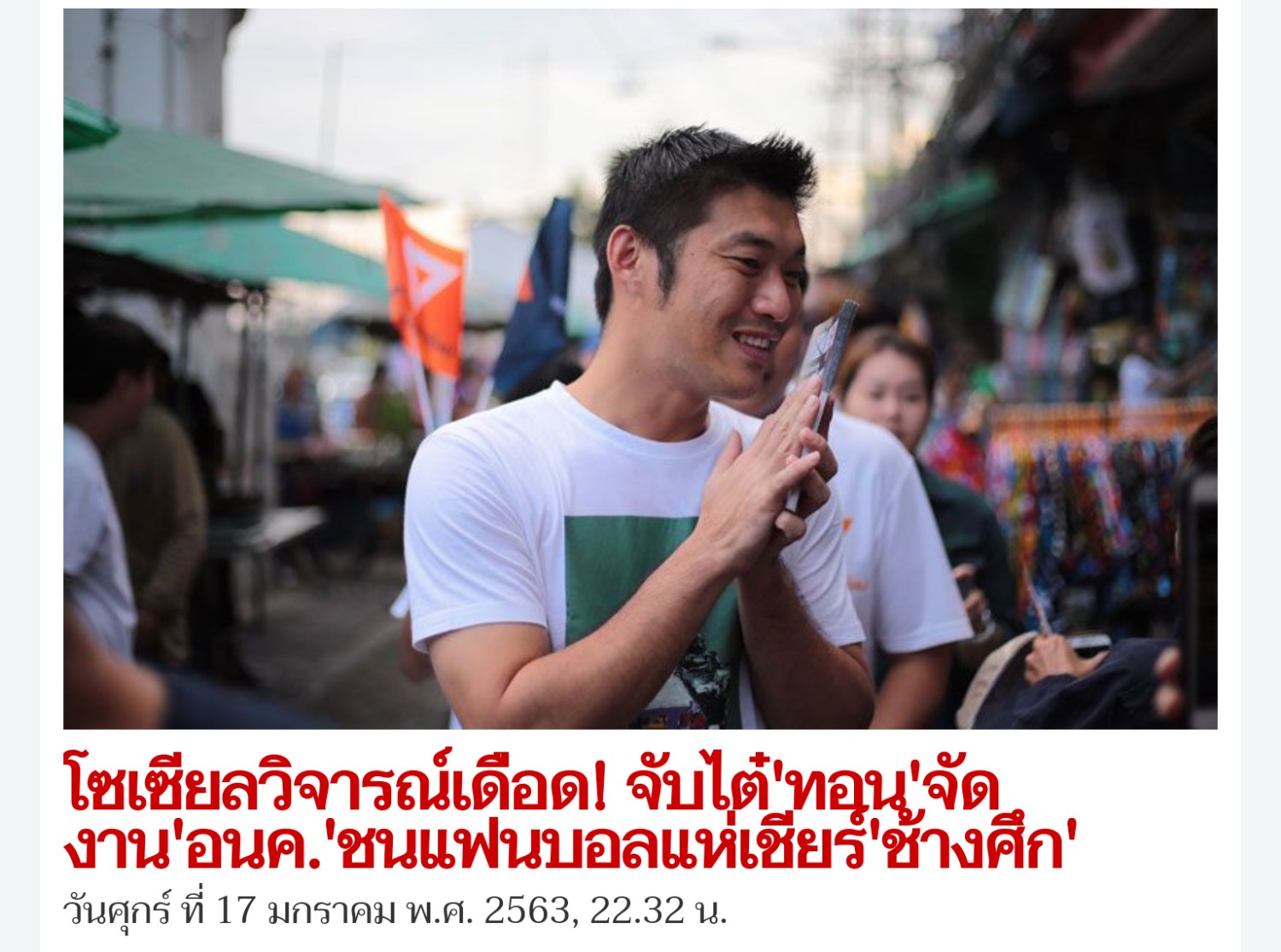 🔮มาลาริน/แอบเนียน..โซเซียลวิจารณ์เดือด! จับไต๋'ทอน'จัดงาน'อนค.'ชนแฟนบอลแห่เชียร์'ช้างศึก'
