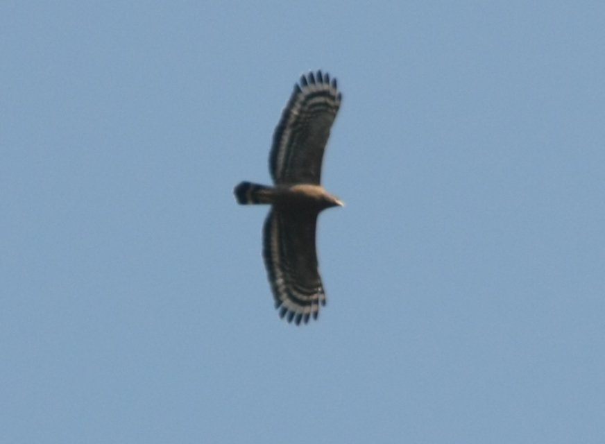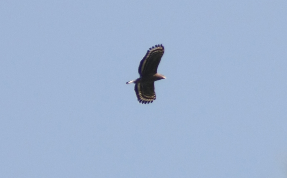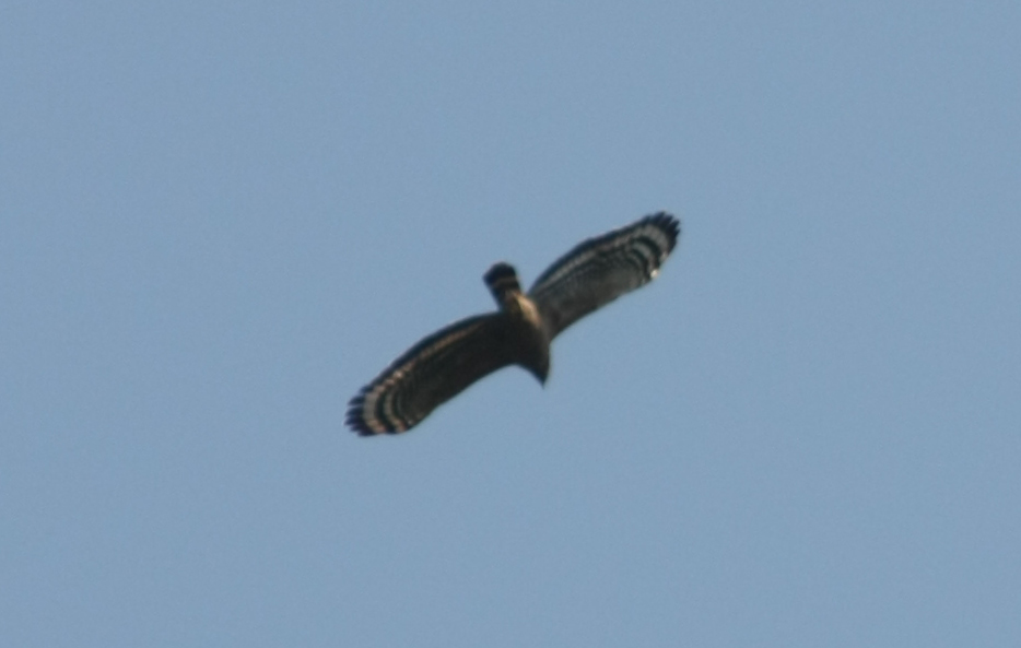 ตัวที่สองผมให้เป็นเหยี่ยวผึ้งจากขีดสีเข้มสามขีดที่หางและส่วนหัวสีเทา แต่จากท่าทางการการร่อนหุบปีกจึงไม่เห็นทรงรูปร่าง (jizz)ที่ชัดเจน
