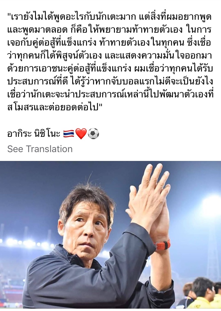 จากเพจจอนครับ อากิระ นิชิโนะ แจ้งกับสมาคมกีฬาฟุตบอลแห่งประเทศไทยฯ เรื่องแผนการเดินทางจากสหรัฐอาหรับเอมิเรตส์กลับไปยังประเทศญี่ปุ่น หลังเสร็จสิ้นภารกิจในศึกฟุตบอลโลก 2022 รอบคัดเลือก โซนเอเชีย รอบสอง