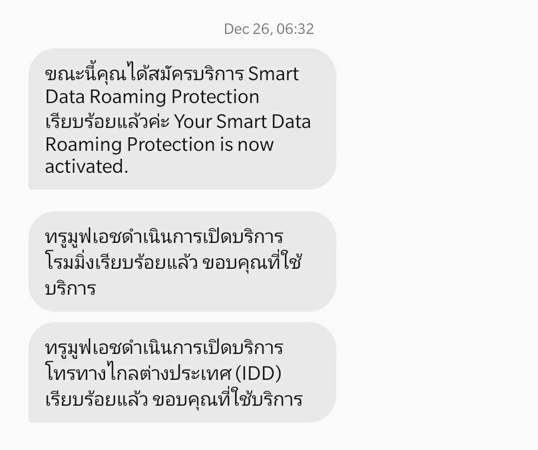 3. sms ที่เราได้รับแจ้งหลังจากนั้นเราคิดว่าสมัครเรียบร้อยแล้วเลยไม่ได้กดซ้ำอีกครั้ง กลายเป็นว่านั้นเป็นแค่การเปิดสัญญาณโรมมิ่งยังไม่มีการสมัครโปรเสริมแต่อย่างใด ซึ่งจุดนี่ขอบอกเลยว่าแย่มากๆ ไม่เคลียจริงๆ เรารู้สึกงงมากขั้นตอนซับซ้อนแถมสื่อสารไม่เคลีย