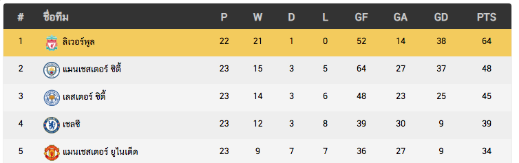 ตั้งเเต่ต้นฤดูกาล จนถึงก่อนเเดงเดือดเมื่อวาน