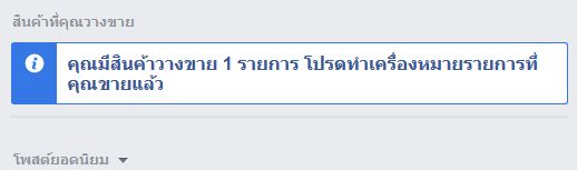 โพสขายสินค้าที่กลุ่ม บน FB ทำไมมันขึ้นว่า "คุณมีสินค้าวางขาย 1 รายการ โปรดทำเครื่องหมายรายการที่คุณขายแล้ว"