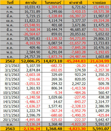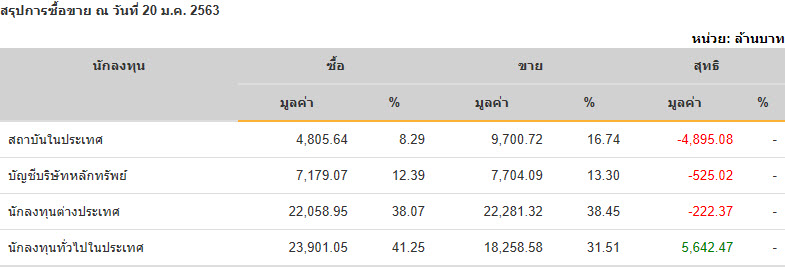 Sinthorn Summary 20/1/2563 : ต่างชาติขายสุทธิ -222.37 ลบ.