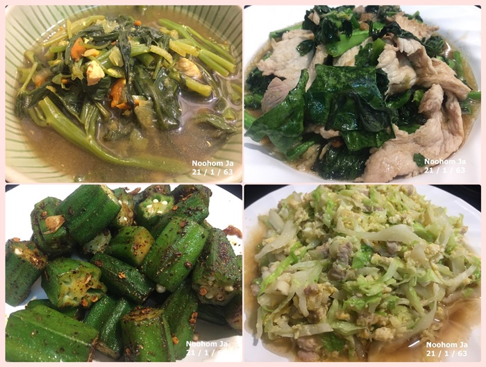 วันนี้ของกินลำอยู่ตี้คนมัก หมูหมักทอดคะน้า แก๋งผักบุ้งใส่ขมิ้น คั่วกะหล่ำใส่ไข่ กระเจี๊ยบย่างใส่พริกลาบ อาทิตย์นี้การเงินพี่แหวดคงคล่องมืออย่าลืมกดค่างวดวันที่16 ให้เจ้หมอนด้วยอยู่เย็นเป็นสุขเน่อ โตยหื้อตันเน่อ