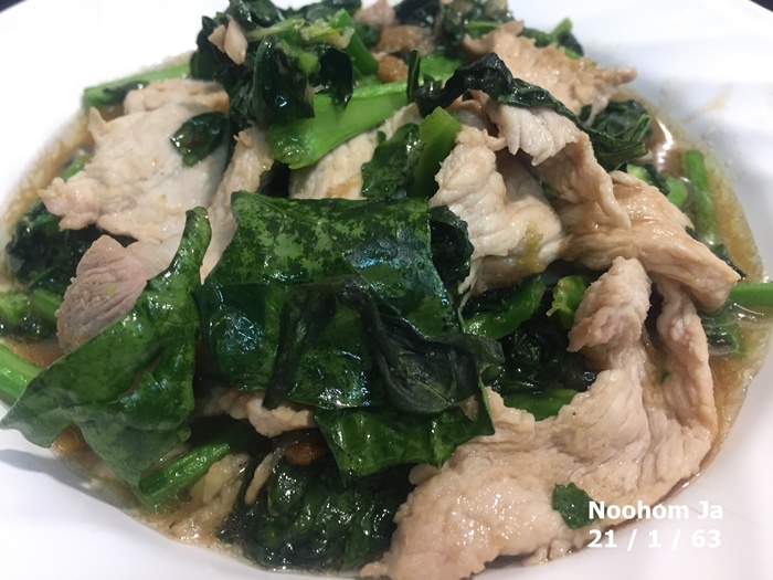 หมักหมูเอาไว้เมื่อวาน เช้านี้เอามาทอกใส่คะน้า อร่อยไปอีกแบบ