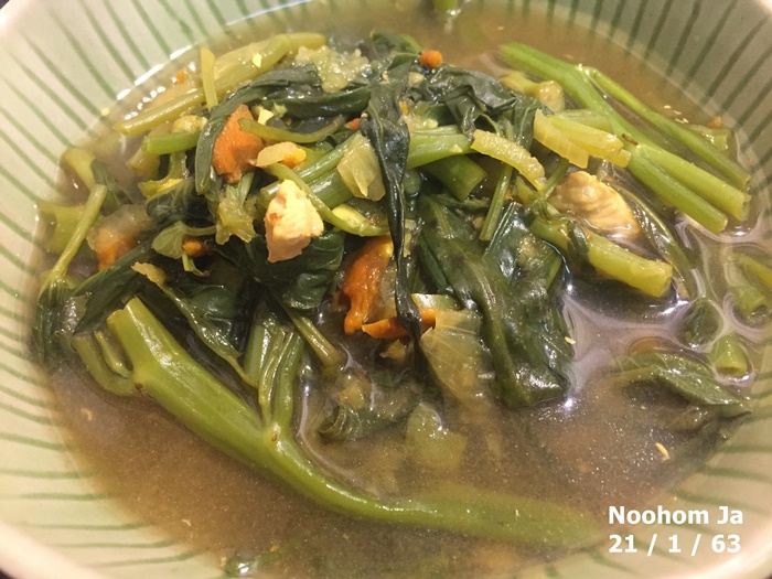 ผักบุ้งของเหลือจากหมูกะทะ เอามาแกงใส่ขมิ้นยาสมุนไพรแก้มะเร็ง