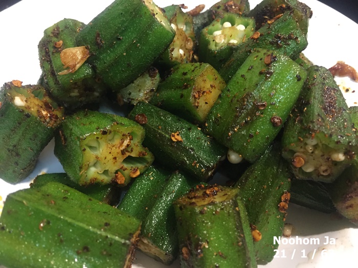 กระเจี๊ยบดัดแปลงพันธุกรรมฝักโต กรอบมาก เอามาผัดพริกลาบ