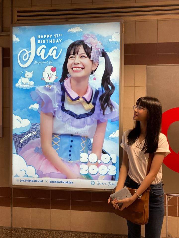 นอกจากไปทำบุญแล้วน้องก็ได้ไปตามถ่ายรูปกับโปรเจคต่างๆที่เหล่าแฟนคลับทำให้อีกด้วย