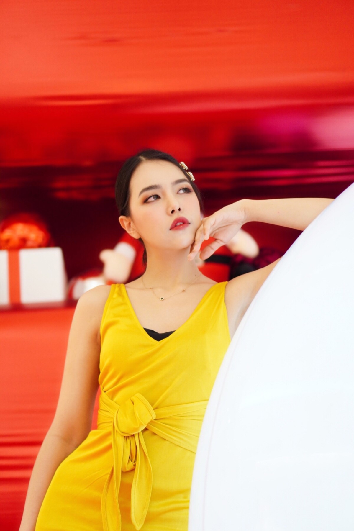 ปอนด์เลือกใส่เสื้อผ้าสีเหลืองค่ะ เพราะเป็นสีที่ดูสุขุม แต่ก็น่าเข้าหา น่ามอง ปอนด์เลือกเสื้อผ้าที่ดูเรียบ แต่มีดีเทลการผ่าข้างเล็กน้อยให้ดูสนุกสนาน สาวๆสามารถใส่เสื้อ Blazer ทับลงไปได้นะคะ ก็จะเพิ่มความ หรูหรา ดูเป็นผู้ใหญ่ให้กับเรามากขึ้น จากนั้นก็ไปถ่ายรูปกันเลยค่า