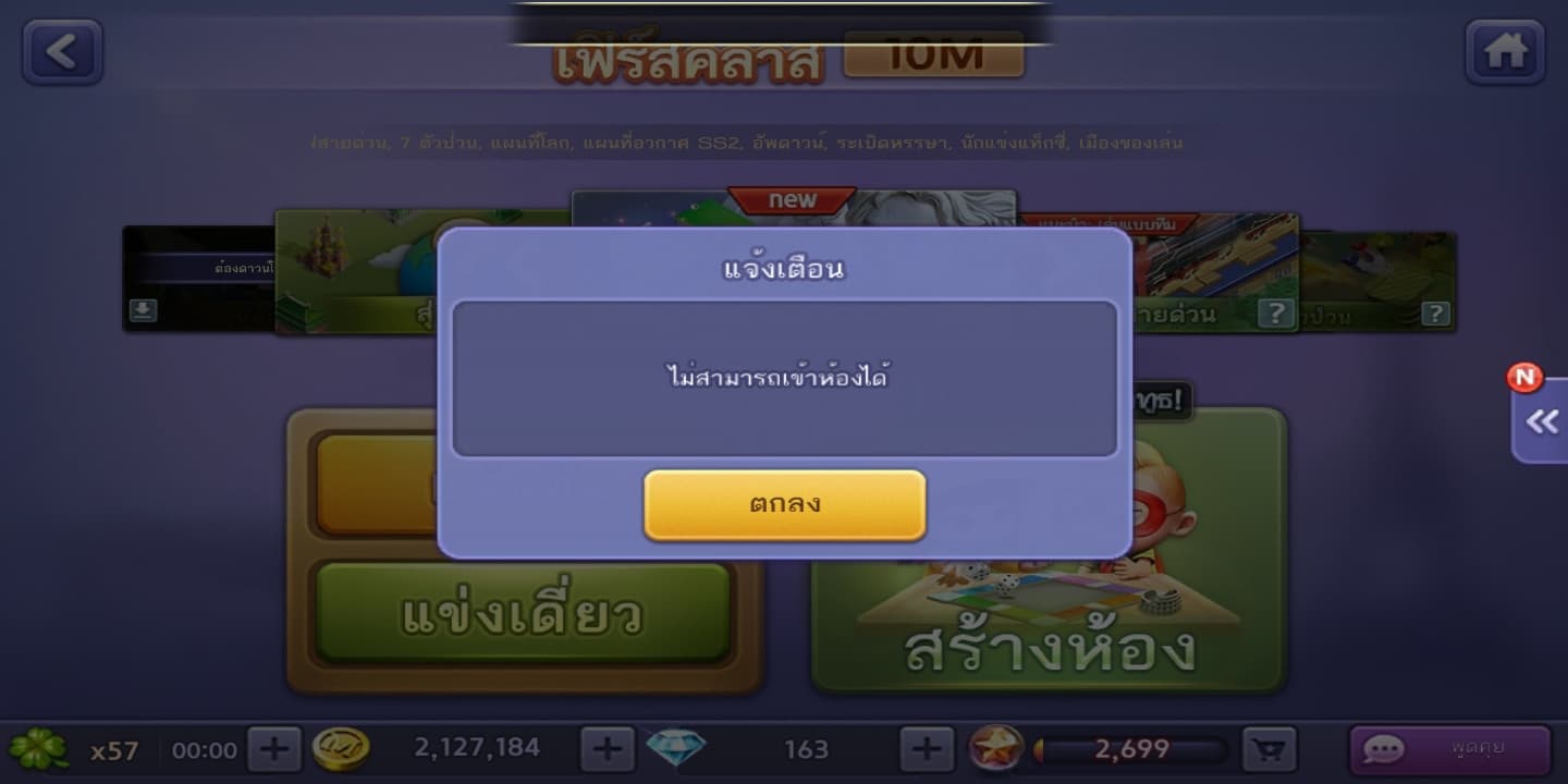 เกมเศรษฐี แจ้งเตือน ไม่สามารถเข้าห้องได้ ต้องทำไงคะ??