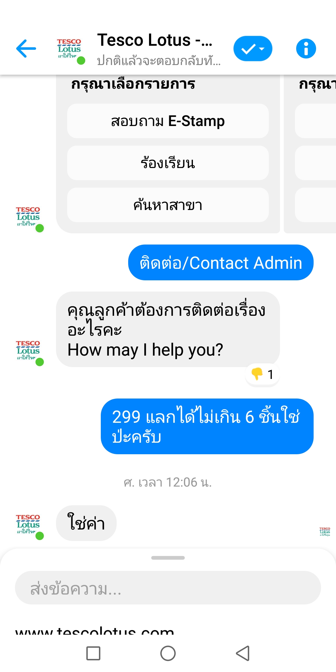 แต่ผู้ช่วยผู้จัดการยังคงยืนยันว่า ซื้อ 299 แลกได้ 1 ชิ้น ถ้าจะแลก 6 ชิ้น ต้องซื้อ 1796 บาท