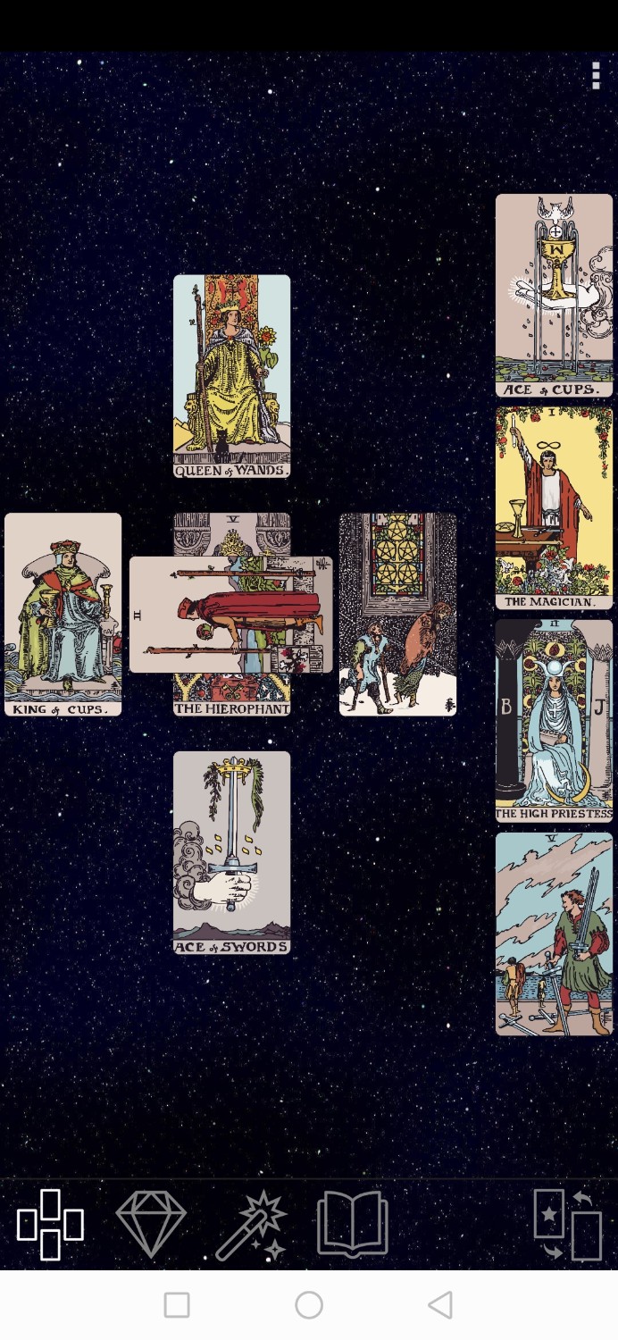 จับ 3 ใบได้ Queen of wand, Knight of wands และ King of pentacles เรียงไปค่ะ แล้วก็ถามว่าเขาชอบเราไหม จับได้ The devil, The magician กับ Knight of pentacles ค่ะ