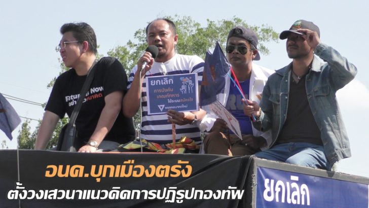 แนวคิดการปฏิรูปกองทัพ” โดยเฉพาะประเด็น ยกเลิกการเกณฑ์ทหาร ซึ่งเป็นนโยบายสำคัญของพรรคที่เคยหาเสียงเลือกตั้งไว้ จากนั้นทั้งหมดได้ขึ้นรถแห่ พร้อมปราศรัยผ่านเครื่องขยายเสียงออกแจกแผ่นพับ สติ๊กเกอร์ รณรงค์ยกเลิกการเกณฑ์ทหารไปตาม ย่านชุมชน ใจกลางเมืองตรัง หน้าวิทยาลัย รวมทั้งหน้าโรงเรียนต่างๆ โดยเฉพาะหน้าโรงเรียนย่านถนนวิเศษกุล หน้าบ้านพักนายชวน หลีกภัย ประธานสภาผู้แทนราษฎร เพื่อแจ้งความคืบหน้าการทำงานของพรรคอนาคตใหม่ตามที่ได้เคยหาเสียงเลือกตั้งเอาไว้ตอนเลือกตั้ง หนึ่งในนโยบายคือ การยกเลิกการเกณฑ์ทหาร