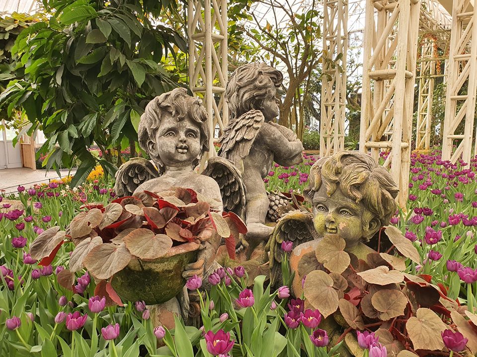 สำหรับส่วนที่ชมดอกไม้ เราจะได้เจอดอกไม้เมืองหนาว อย่างเช่นดอกทิวลิป ลิลลี่ และกล้วยไม้ฟาแลนด์ พร้อมทั้งแต่ละส่วนของโซนดอกไม้จะตกแต่งเป็นตามธีมต่างๆ และยังสามารถมาถ่าย Pre wedding ก็ได้ โดยเฉพาะโซนสวนอังกฤษนี่จะป๊อปปูล่ามาก นอกจากนี้ก็จะมีโซนป่าดึกดำบรรพ์ ที่จะได้เจอไดโนเสาร์ยักษ์ โซนกินรี หรือโซนมหาพีระมิด อีกด้วยค่ะ
