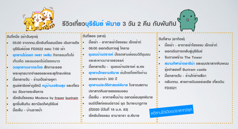 และเพื่อให้ง่ายกับใครที่อยากจะเที่ยวตามรอย เราเลยลง itinerary สำหรับ 3 วัน 2 คืนในการเที่ยวครั้งนี้ให้ดูด้วยจ้า