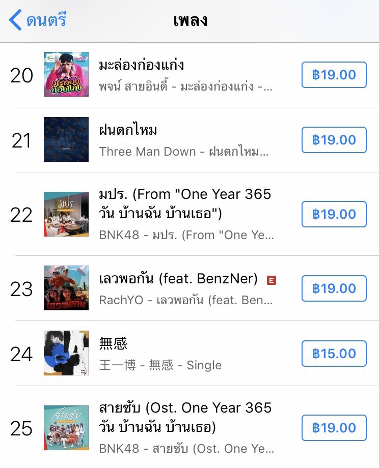 Original song ติด Top 25 ถึง 4 เพลง (iTunes)