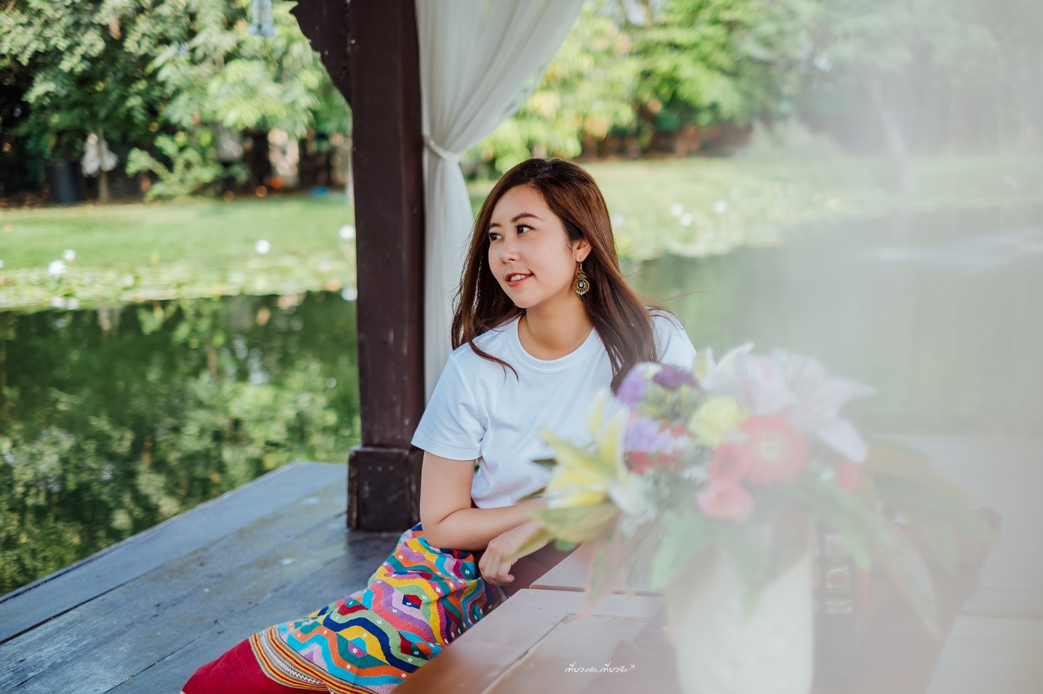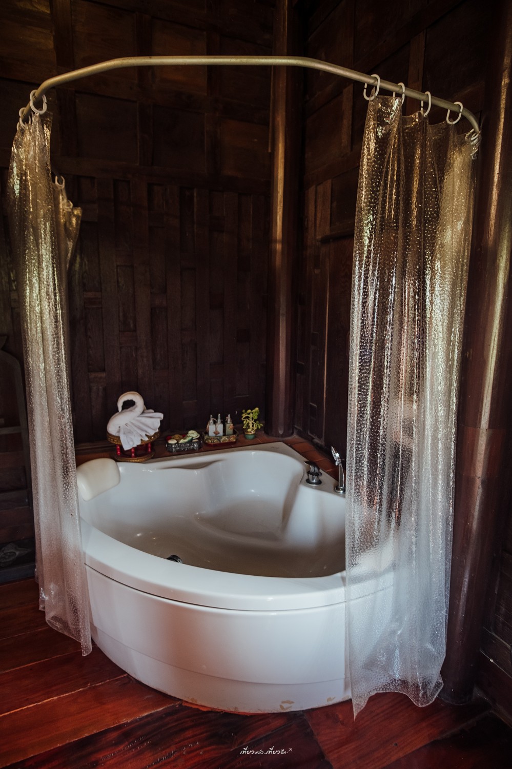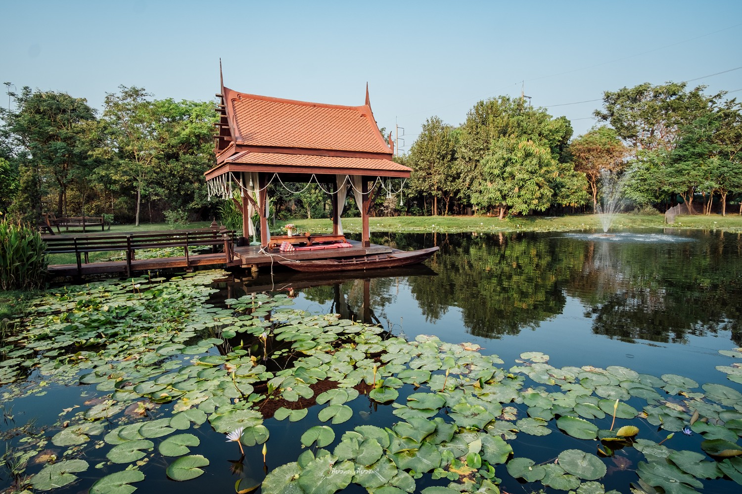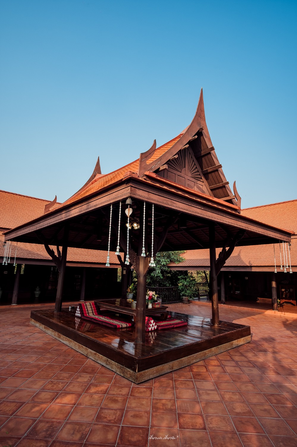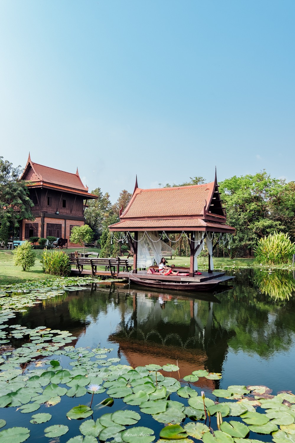 โดยตัวเรือนไทยสวยมากๆ มีสระน้ำอยู่ด้านหน้ามีศาลาริมน้ำด้วยเก๋สุดๆ