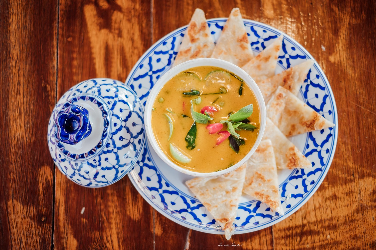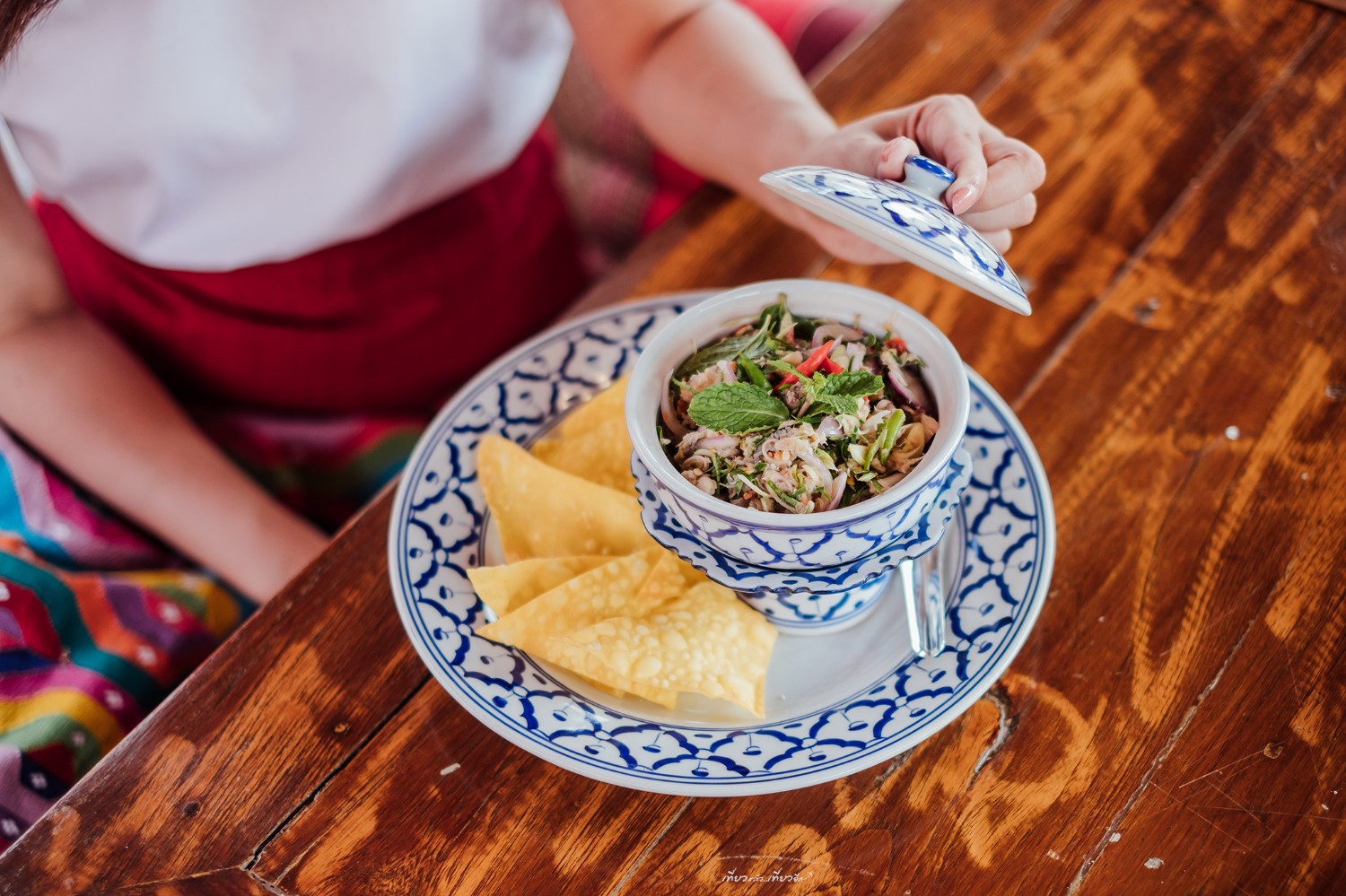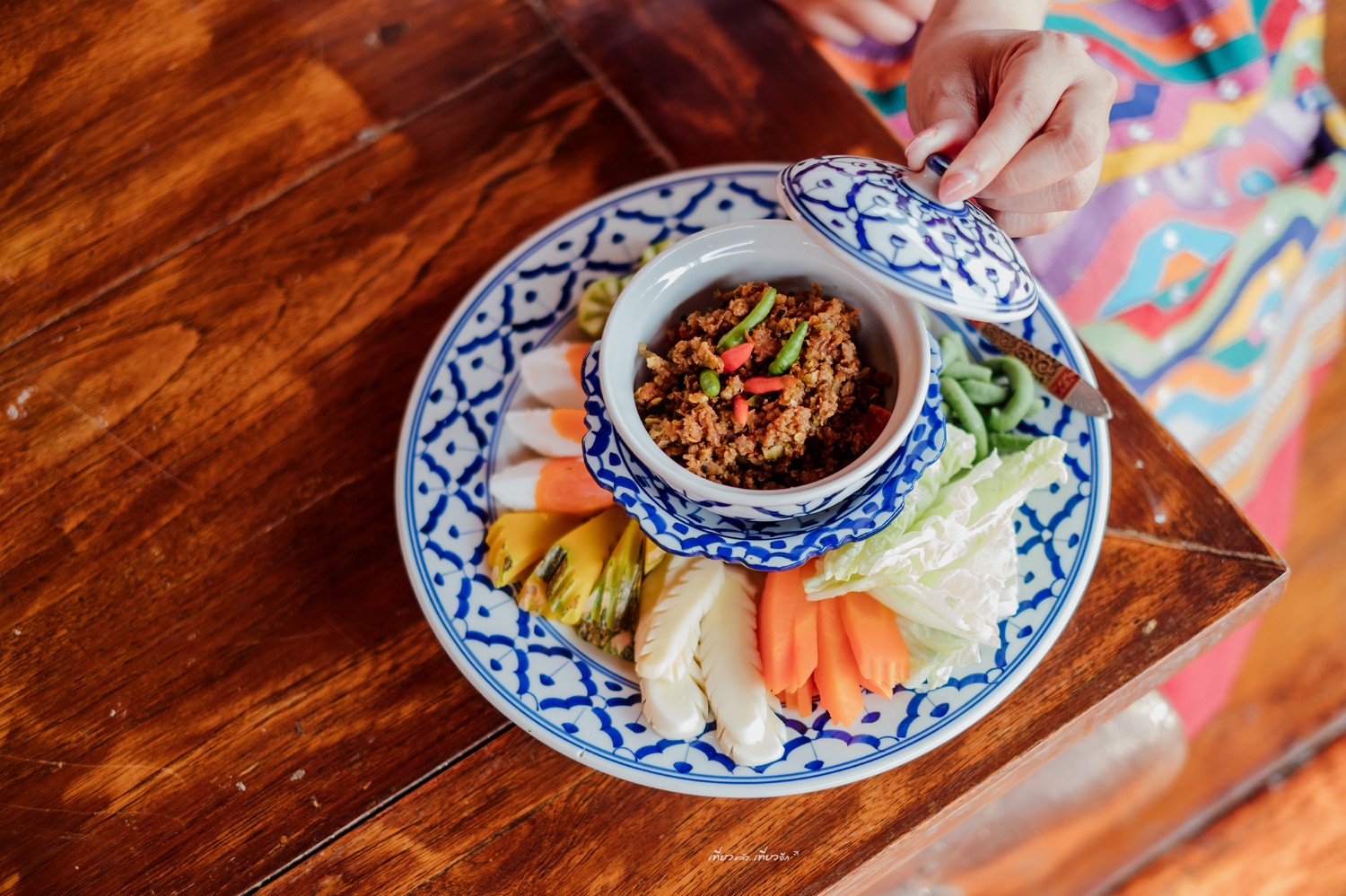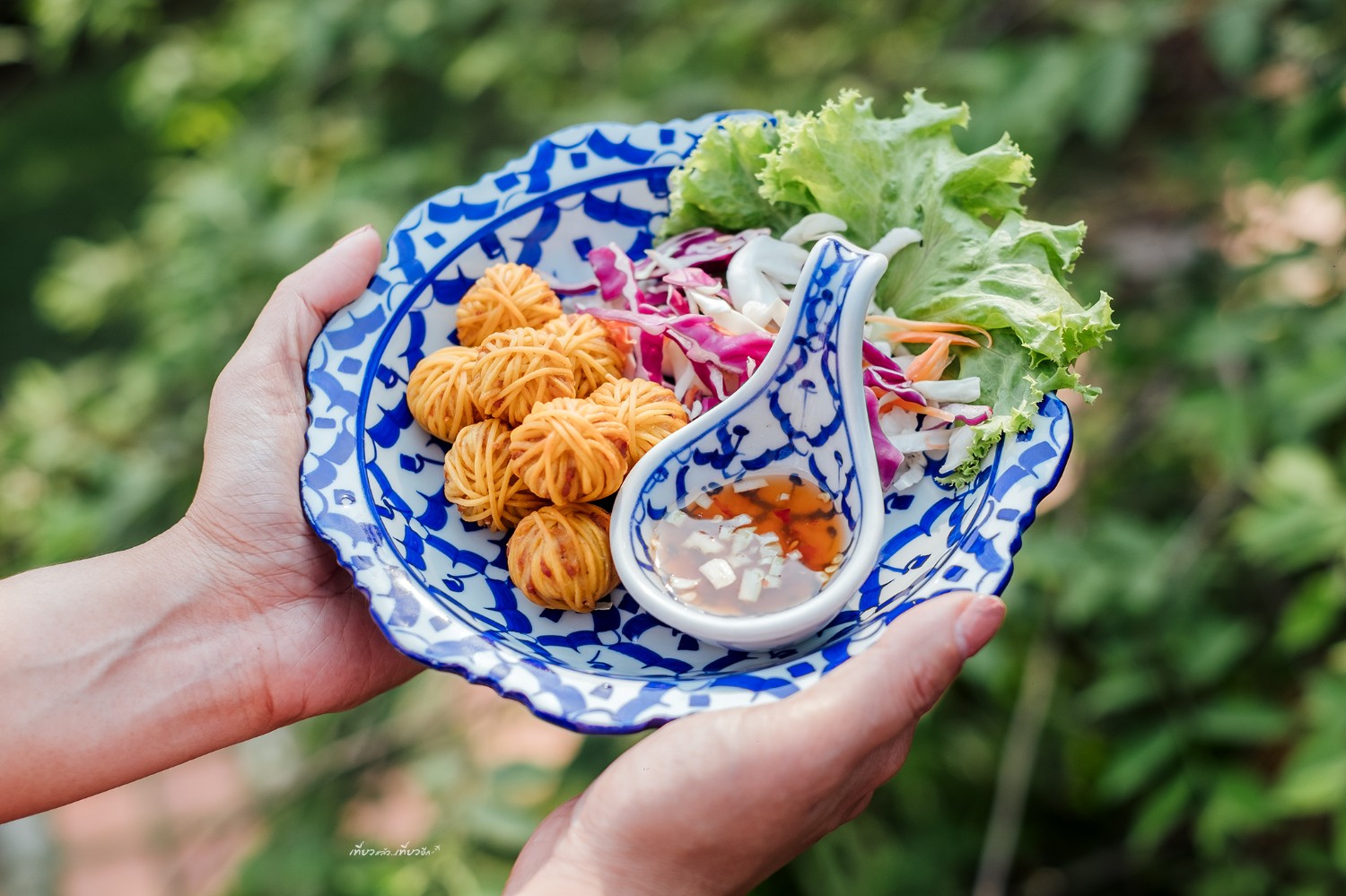 หลากหลายเมนูอาหารของเรือนรับขวัญ ใช้ภาชนะลายคราม สวยงาม และการจัดจานที่ดูดี สวยมากๆ