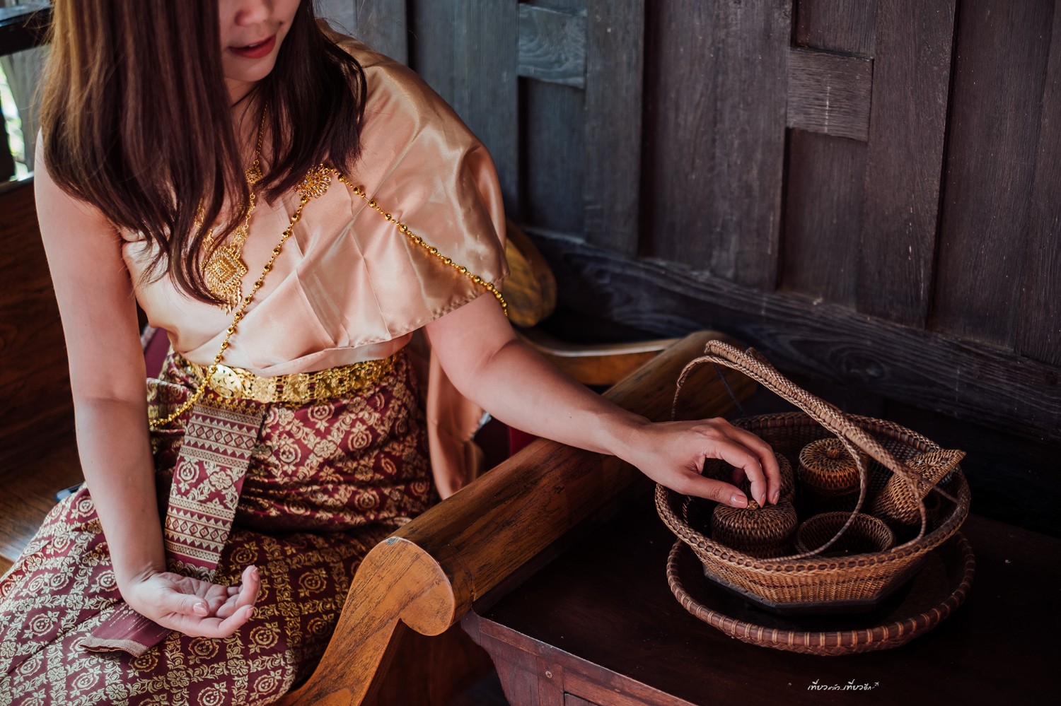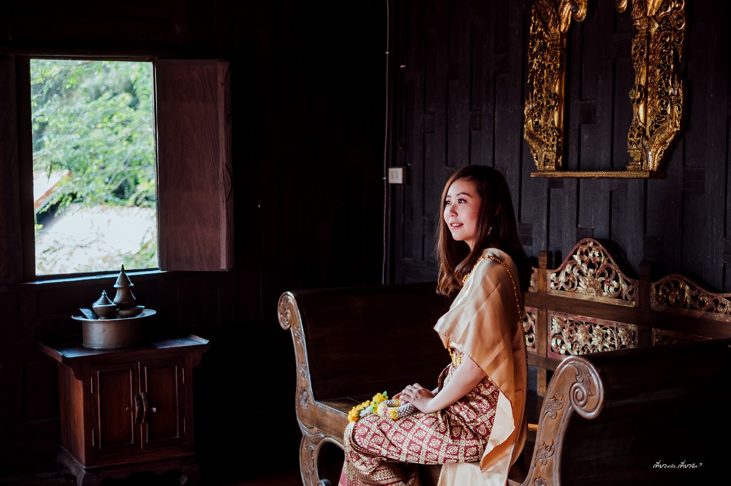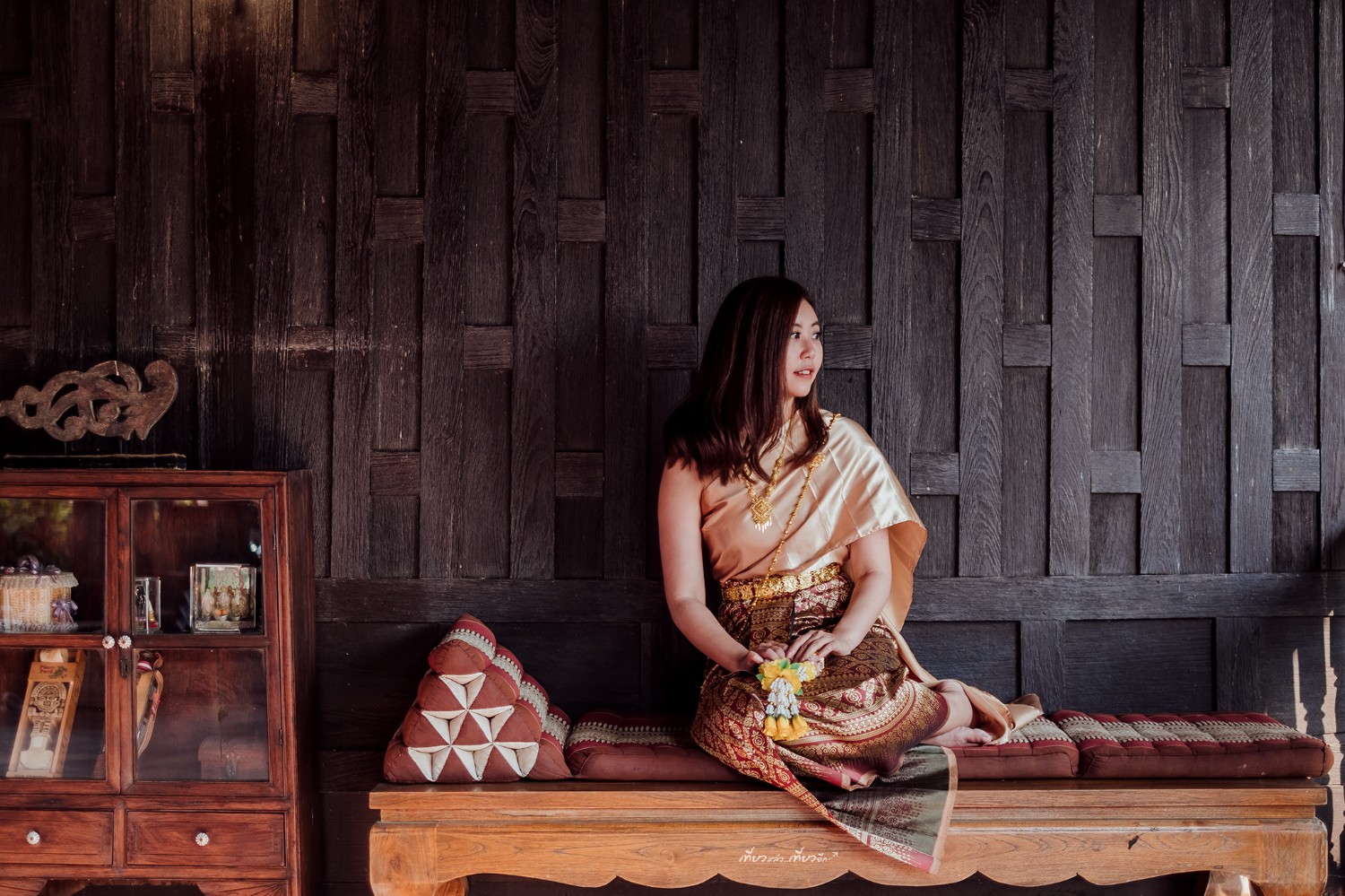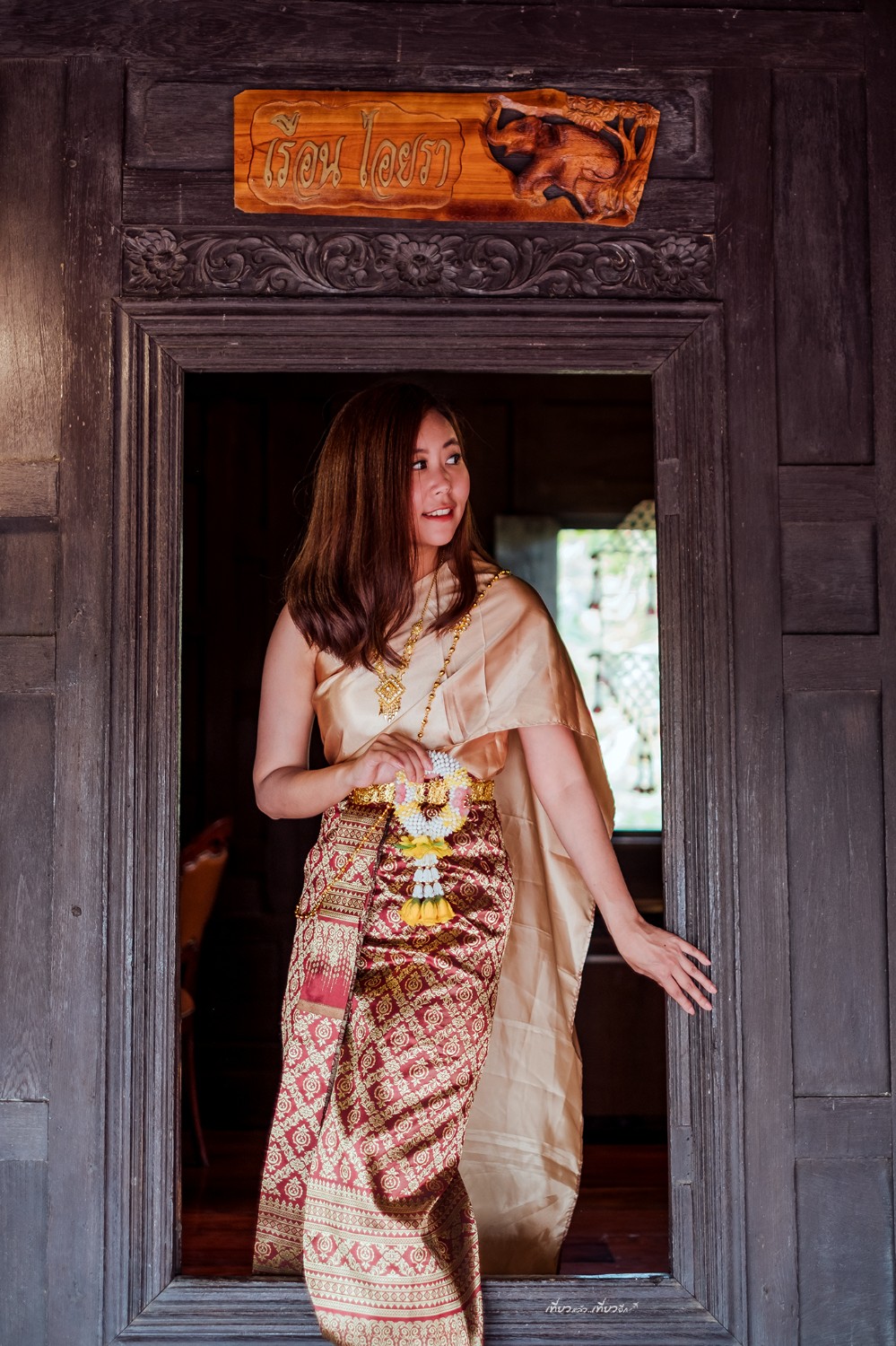 เช่าชุดไทย 200 บาท ถ่ายคู่กับ เรือนไทยคหบดี เข้ากันดีงาม สวย ชอบมากกกก