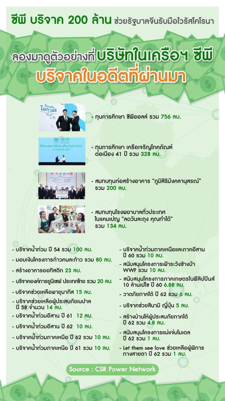 "CP บริจาคเงิน บริจาคอุปกรณ์ บริจาคของใช้ต่างๆ"