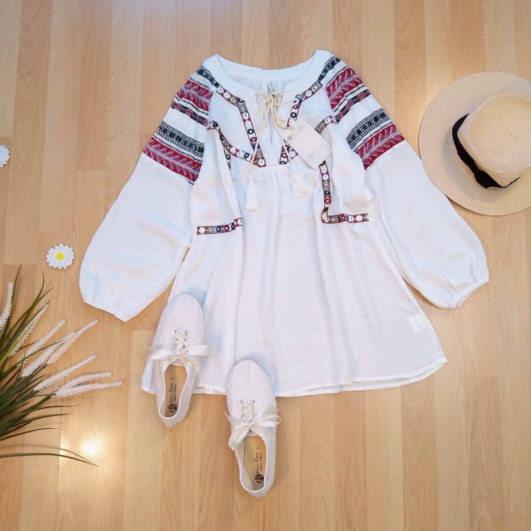แขนปักรอบเลยนะคะ ผ้าค้อตตอนทอใส่สบายปลายแขนจั้มค่า