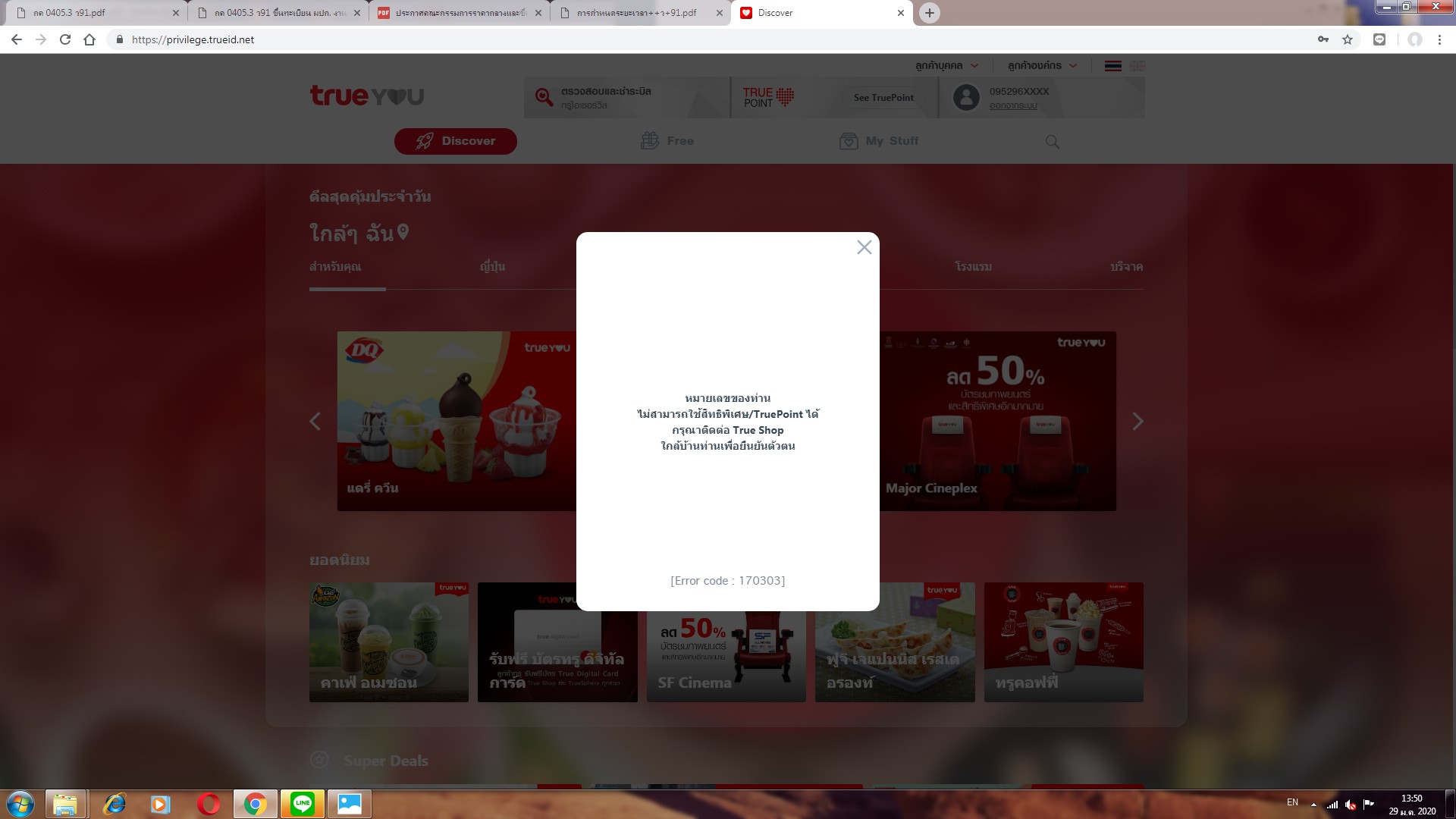 มีปัญหา เข้าใช้ true you เช็คสิทธิ์ True point มาตั้งแต่ช่วงปลายเดือน ต.ค. 62 จนตอนนี้ ไปติดต่อ True Shop ไม่ต่ำกว่า 3 ครั้ง ที่สาขาเดอะมอลล์งามวงศ์วาน ก็ได้รับแจ้งว่า ไม่จำเป็นต้องยืนยันตัวตน