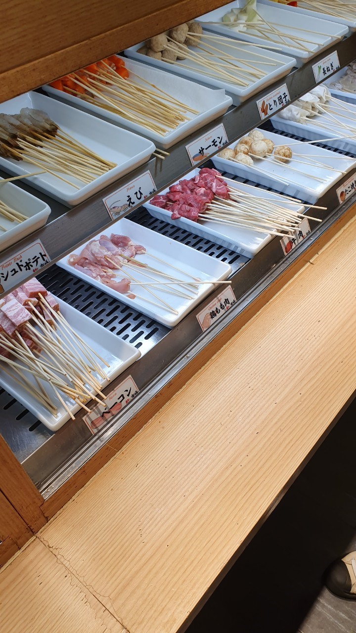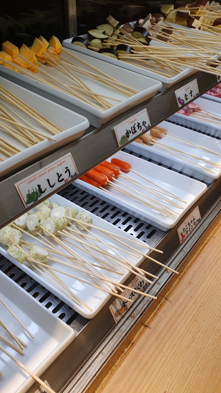 มีร้านให้เลือกทานนับสิบร้าน แต่ในวันนี้เราจะไปรู้จักกับคูชิคัทซึในแบบของคนโตเกียวนั่นก็คือ คูชิอาเกะ (串揚げ)(เป็นไม้เสียบของหลายๆ ชนิด) นั่นเอง